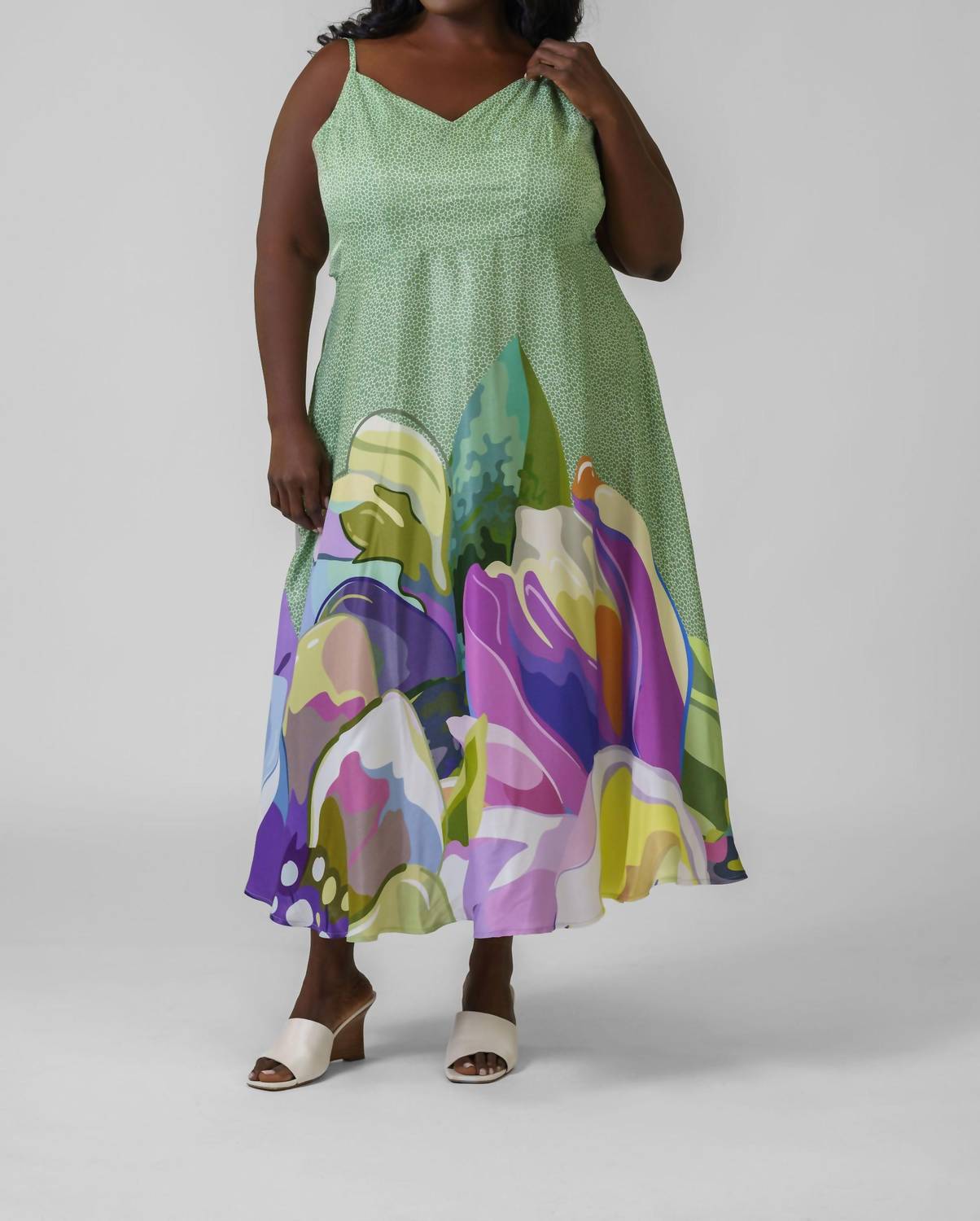 Who doesn't love a good maxi dress? This one you'll be reaching for season after season. Experience effortless elegance with the Aemee Floral Sleeveless Dress by -bl^nk-. This maxi dress in mint green with a boho chic floral pattern features chic spaghetti straps and a flattering V-neck. Made from 100% Crepe Satin and designed with an empire waist silhouette, it's a stylish choice for spring occasions. Closure: Pull on. Care: Dry clean only.