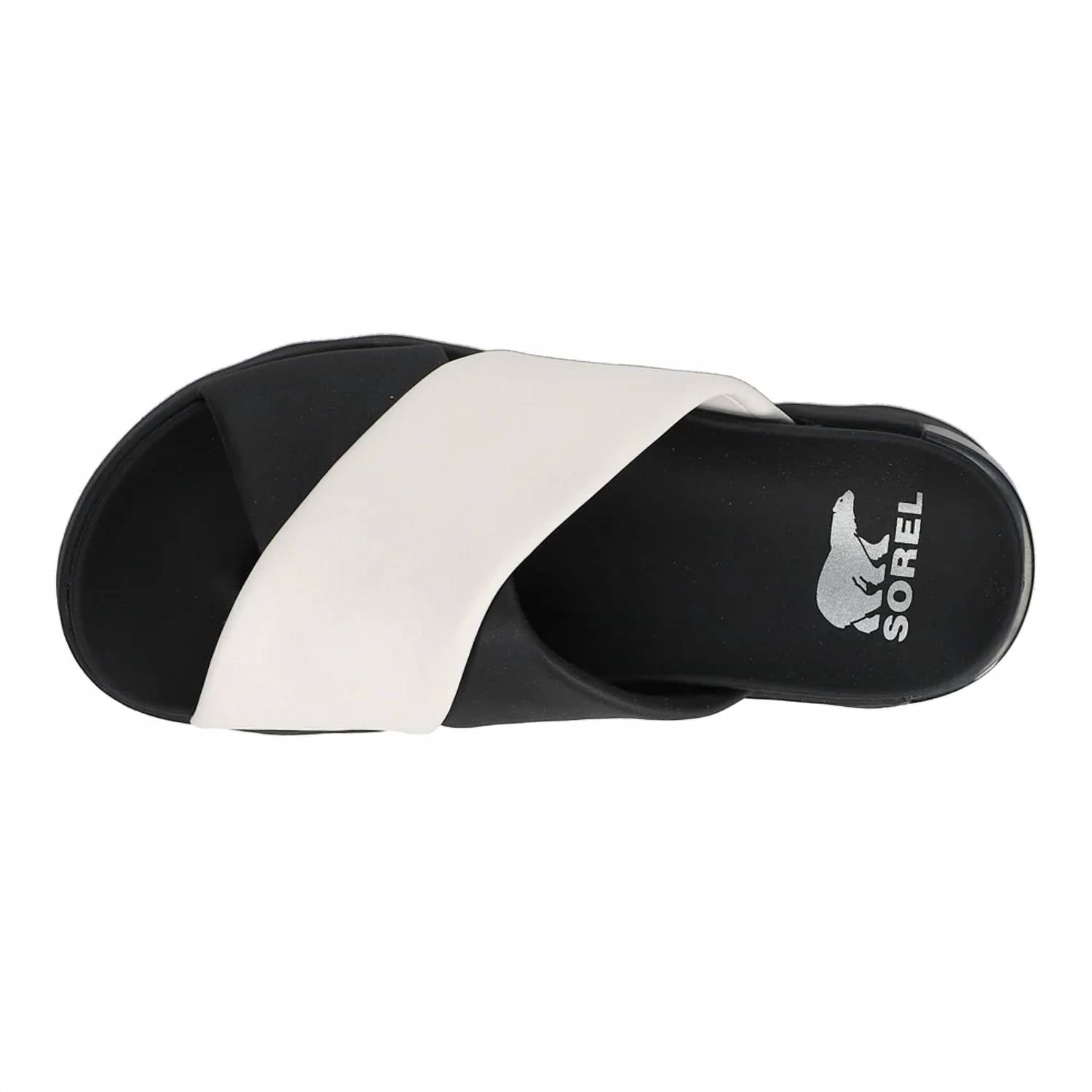 Classicly cute and all-day-wearable. We love this sandal. Discover casual elegance with the SOREL Women's Viibe Crisscross Sandals in black. The sandals feature buttery soft full-grain leather crisscross straps and a molded and contoured EVA footbed, offering comfort with every step. These slides sit on a 1-inch platform height and a lightweight LIVELYFOAM midsole, complemented by a molded rubber with ground contact EVA outsole. Perfect for effortless all-day wear, they boast a chic peep toe design and a flat platform heel for an elevated yet comfortable style.