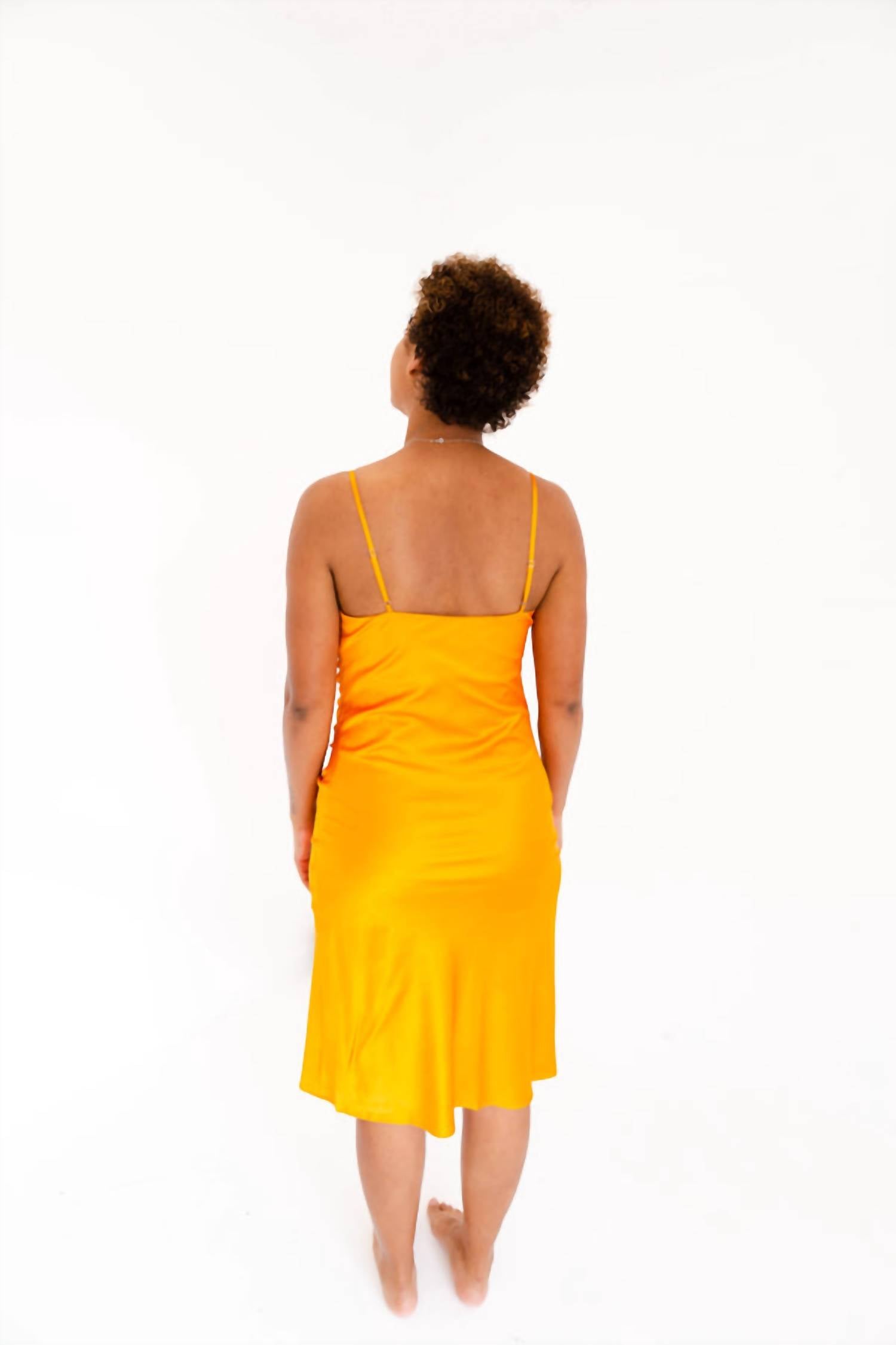 Just add slides or mules and you are good to go. Elevate your evening events with the Pierre Gathered Dress by LUCY PARIS, a statement piece in vibrant tangerine. This solid, sleeveless midi dress features a stylish cowlneck and a slip silhouette, perfect for spring gatherings. Its elegant design stands out effortlessly. Care instructions include hand washing and line drying to maintain its pristine condition.
