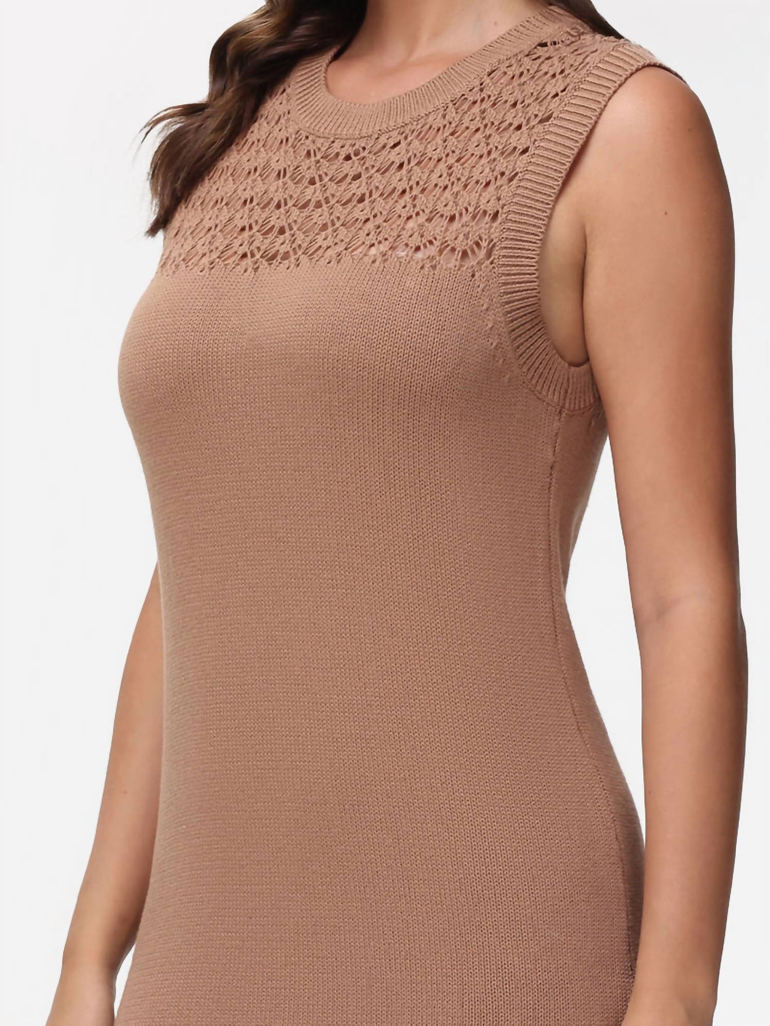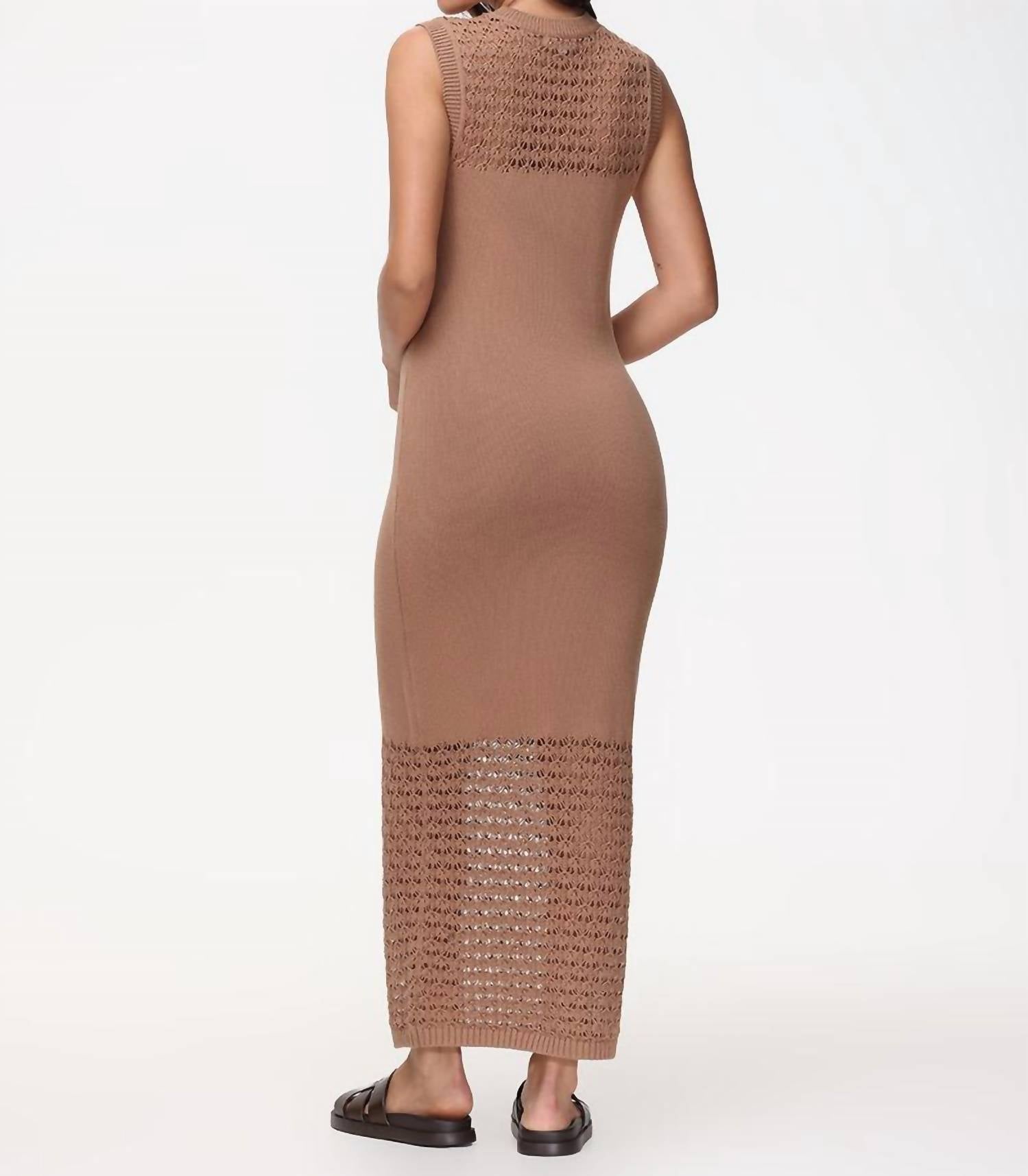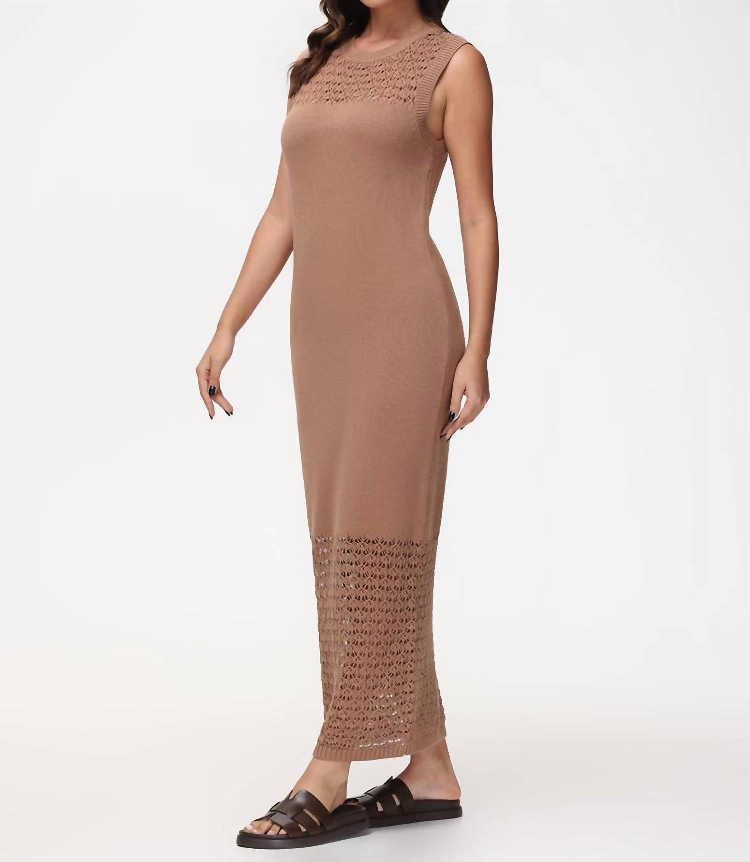 Who doesn't love a good maxi dress? This one you'll be reaching for season after season. Meet the Crochet Maxi Dress by 525 America, your new go-to for easy elegance. This sleeveless design in a rich cinnamon shade boasts a textured, crochet-like knit and a flattering bodycon silhouette. Crafted from 100% Cotton, it offers comfort and style with a convenient pull-on closure. Care is a breeze with machine wash and tumble dry instructions.
