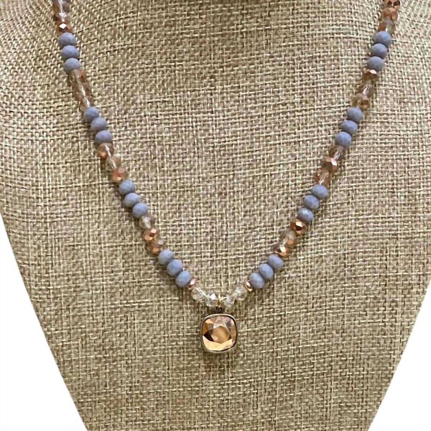 Both understated and impactful, you'll be reaching for this one-of-a-kind necklace season after season. Elevate your look with the Pink Panache Women's Rose Gold Crystal Beaded Necklace, a stunning fashion piece crafted with exquisite gold plating. This elegant necklace features a dazzling 12mm rose gold Austrian crystal cushion-cut pendant, beautifully complemented by a mix of gray and blush-toned beads with gold accents. Measuring 16 inches with a 3-inch extender, it's perfect for adding a touch of Texas glam to any outfit, whether layered or worn solo. A versatile and unmistakably Pink Panache creation, it’s a must-have addition to your jewelry collection.