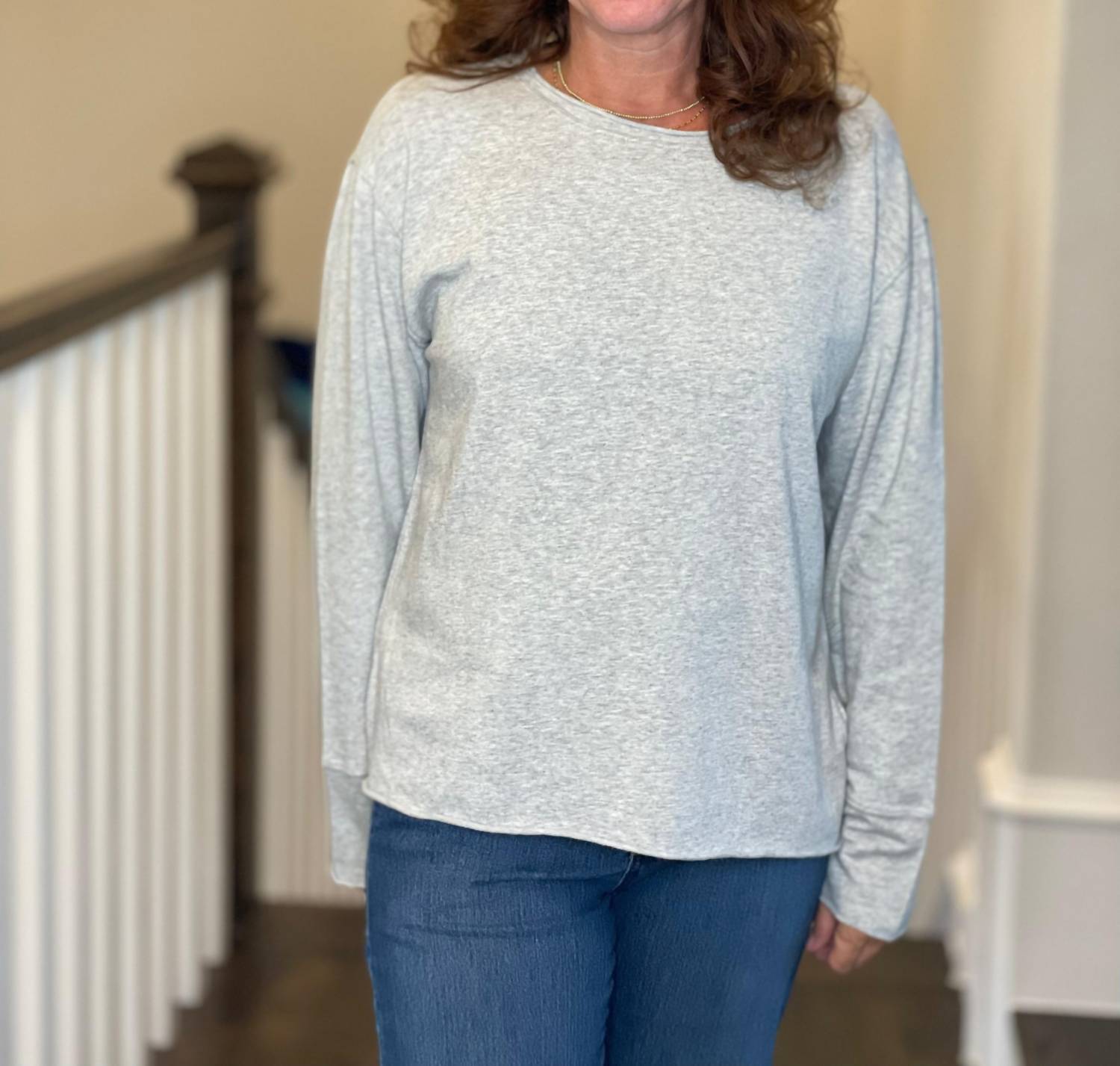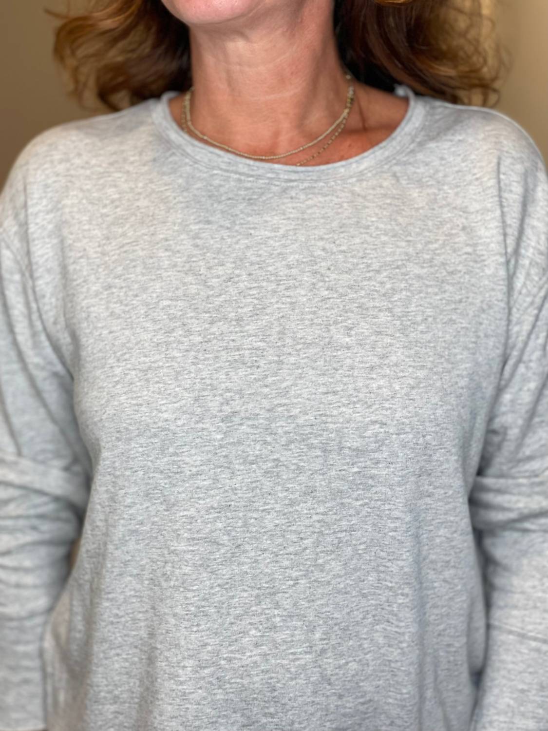 The ultimate go-to sweater, expertly crafted to provide the perfect combination of warmth and style. Its classic design and soft fabric make it a must-have addition to your wardrobe. Introducing the Cali Crew by Dylan, a soft and lightweight crew neck pullover in Heather Grey perfect for transitioning between seasons or enjoying in warmer climates. Featuring long sleeves with rolled edges, this piece offers a fun, casual vibe while maintaining a minimalist aesthetic. Composition includes a cozy blend of 68% cotton, 29% lyocell, and 3% spandex, ensuring comfort and a relaxed fit. Featuring a pull-on design, it’s easy to style and maintain, with machine wash and low tumble dry care instructions. Cathleen is 5'4" wearing a size small.