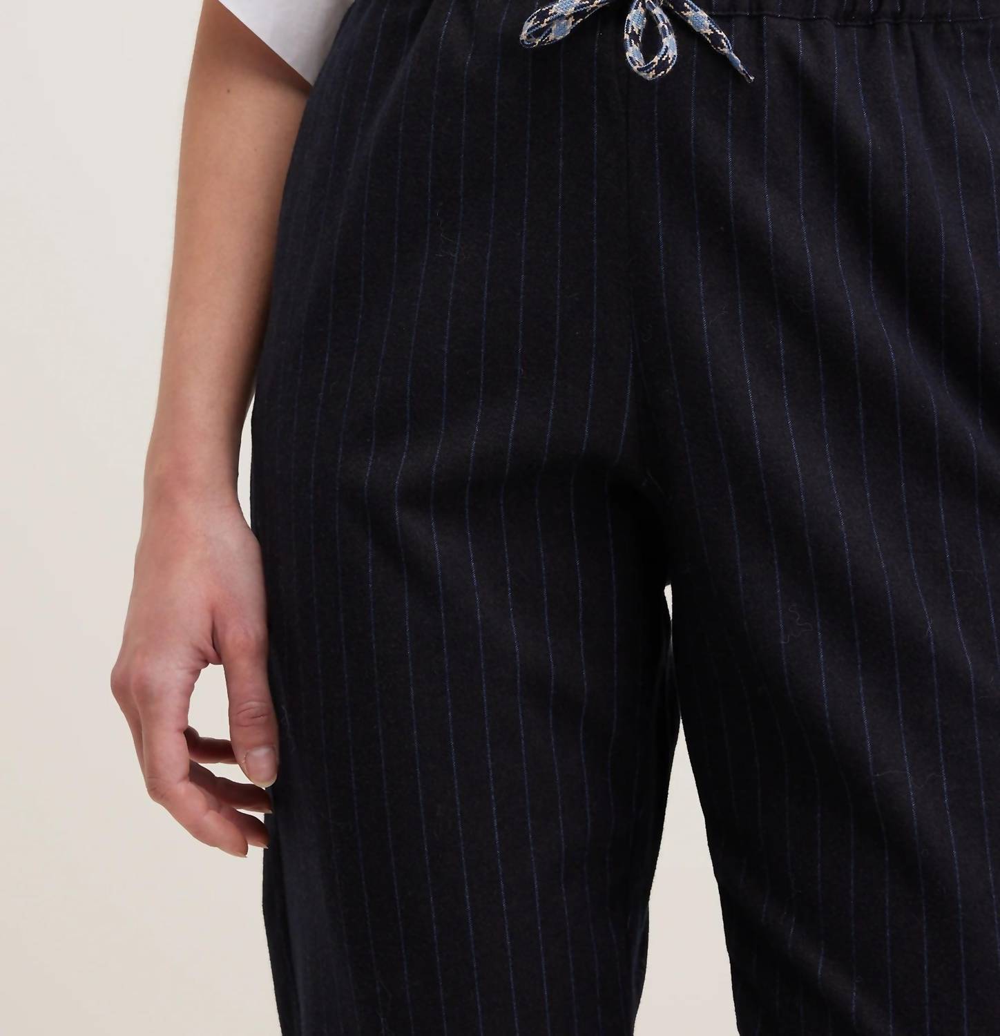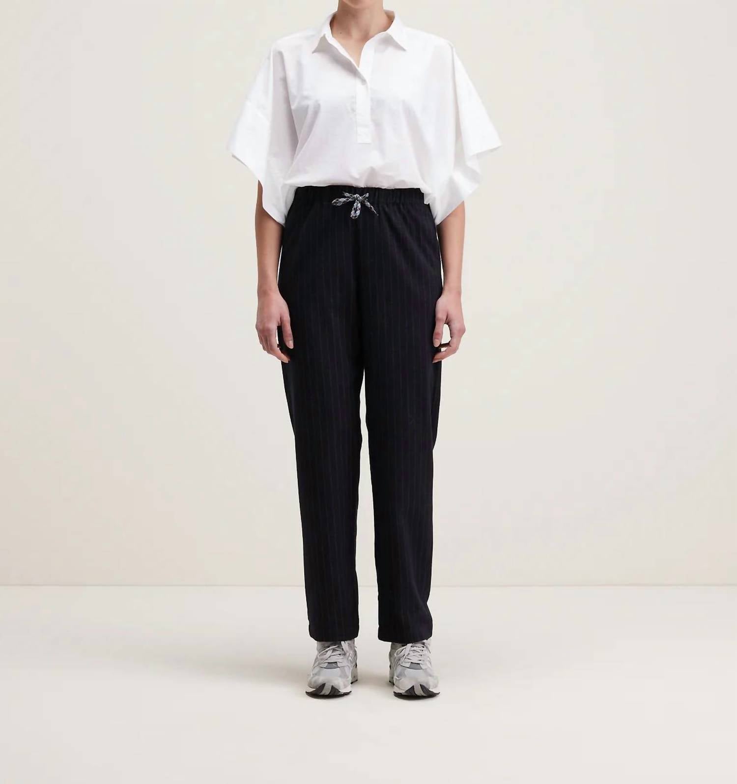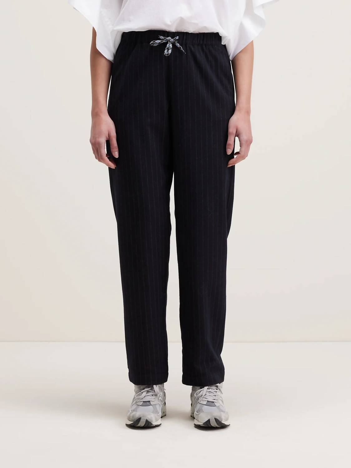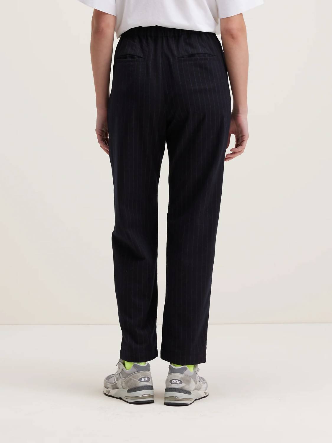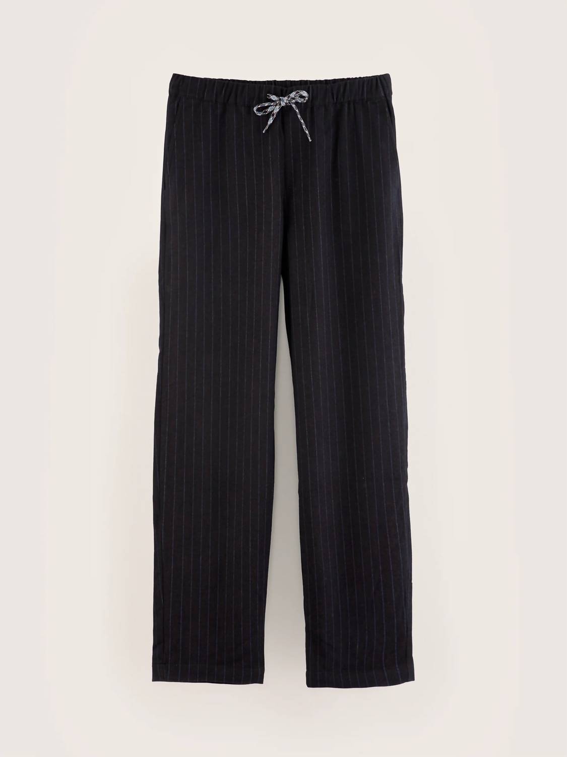 Elevate your wardrobe with the Bellerose Trail Relaxed Pant, crafted from a supple flannel blend of 69% polyester, 29% viscose, and 2% elastane. These lightweight, cropped trousers feature a relaxed straight-leg fit and an elastic waist with a contrasting drawstring for added comfort and style. Made in Tunisia, they offer a refined yet laid-back aesthetic in Stripe A, perfect for workwear or casual occasions. Care for these pants with a machine wash at 30°C using a very delicate cycle, iron at a medium temperature, and avoid tumble drying, bleach, or tumble drying.