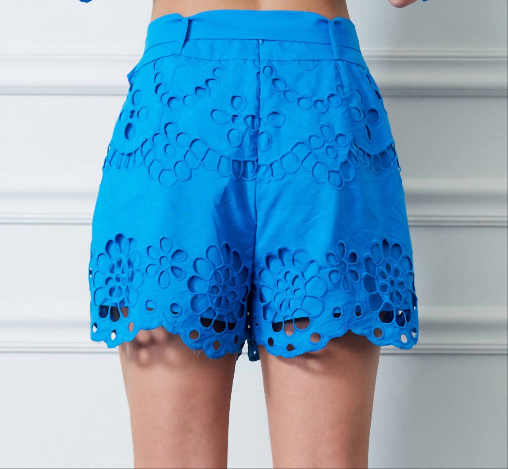 Fit to perfection, we love these high-waist shorts and you will too. Elevate your sunny day wardrobe with the Embroidered Lace Shorts by CIEBON, designed for women who love versatile style. These high-waist shorts in a chic blue feature a textured pattern and a flattering belt detail. Made for summer adventures, they offer a comfortable fit thanks to the zip closure and convenient pockets. Care instructions: Hand wash and lay flat to dry.