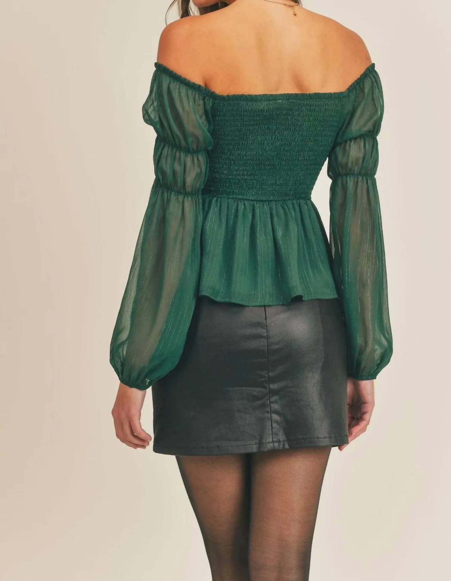 Smocked bodice, sheer balloon sleeves. Elastic cuffs. Peplum silhouette. Partially lined. 100% Polyester.