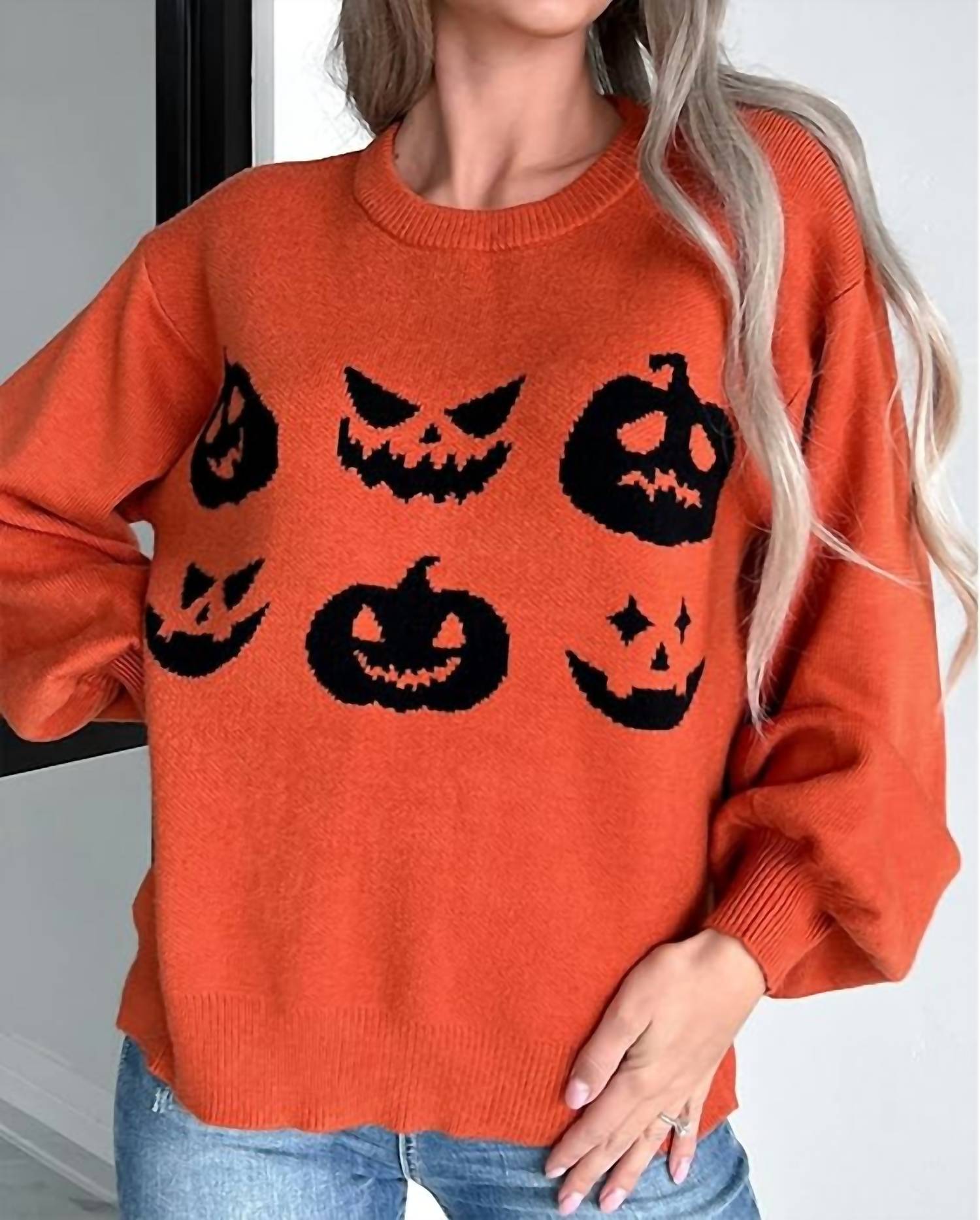 Experience the perfect blend of comfort and style with this trendy crew neck sweater, designed to effortlessly elevate your wardrobe. Pair it with your favorite denim and loafers for the perfect look. Embrace the seasonal spirit with the Fashionworks Halloween Pumpkin Face Sweater, a delightful addition to your festive wardrobe. Featuring long lantern sleeves and a crew neck, this pullover sweater captures the charm with a stylish pumpkin graphic in a vivid orange hue. Crafted from a comfortable viscose blend, this regular-length sweater is perfect for adding warmth and character. Originating from China, it offers convenience with a pull-on closure and can easily be machine washed and tumble dried.