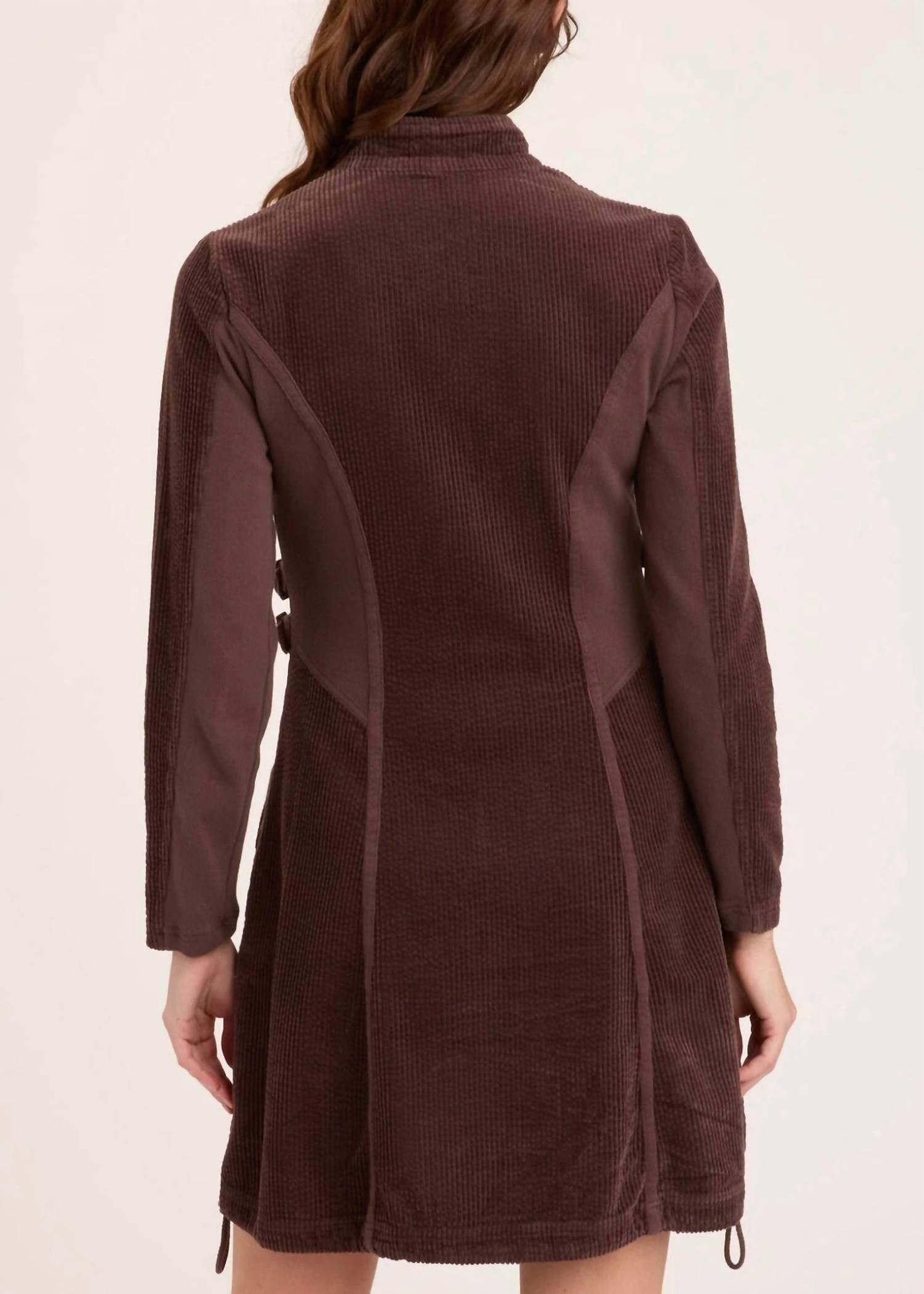 A flattering yet comfortable dress you'll be reaching for season after season. Introducing the Uzma Jacket Dress by XCVI, a chic piece perfect for fall with its long sleeves and textured corduroy material. Crafted from Bravo Corduroy, this dress is made of 100% cotton with rib contrast panels containing 95% cotton and 5% spandex for a comfortable fit. It features a stylish double zip closure, double buckle straps, and practical pockets. With a center front length of about 33.25" and a center back length of about 35.5", this imported piece in the elegant color Belge is machine washable and preshrunk for your convenience. Model Julia is wearing a size small, measuring 5'10" in height, and has a 34C bust, 26" waist, and 36" hips.