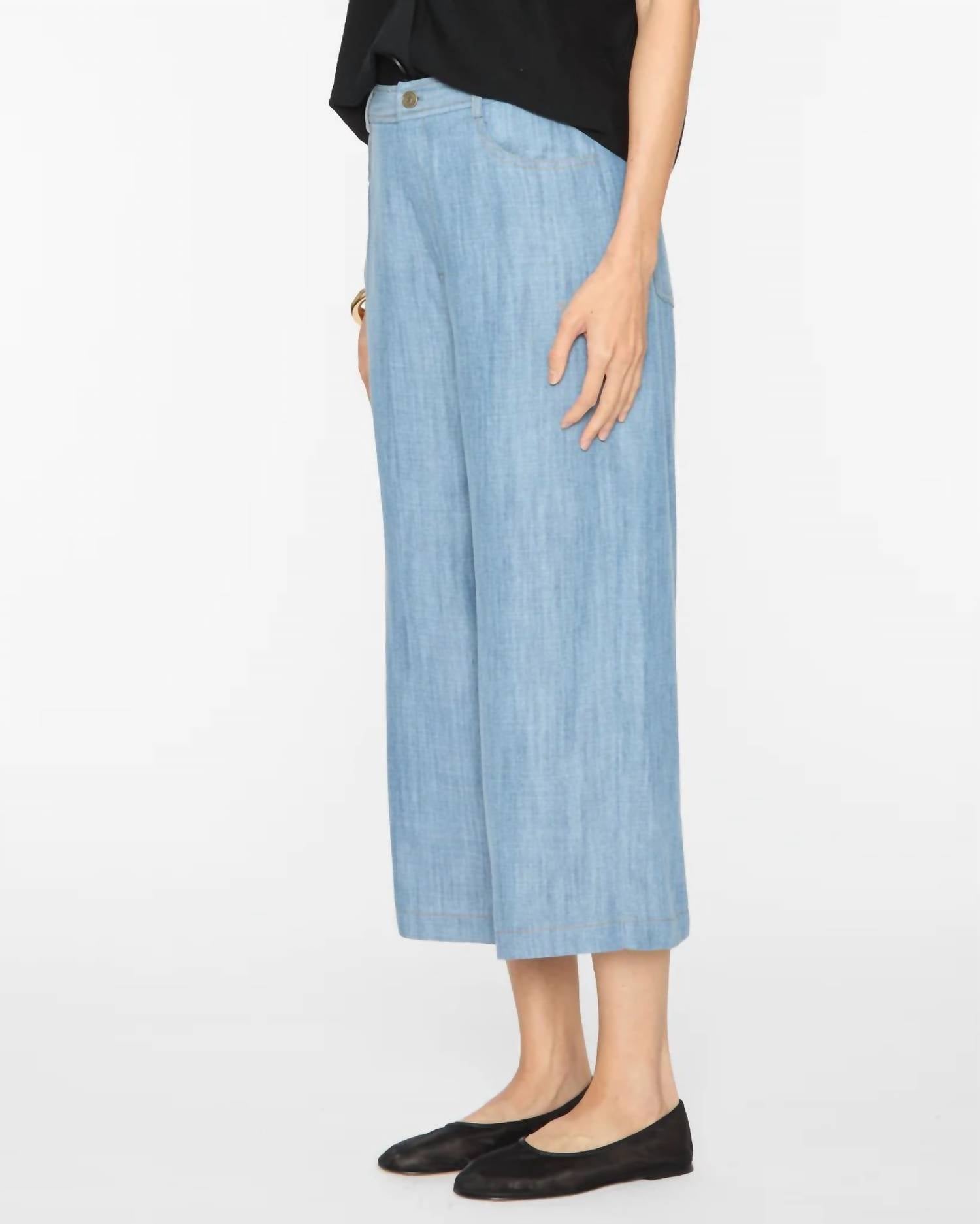 Introducing the Kairi Pants by DREW, your go-to choice for elevated style with an effortlessly chic vibe. Crafted from denim, these women's pants feature a flattering high waist and a comfortable, wide-leg silhouette that's perfect for any occasion. The bleach color and solid pattern add a touch of sophistication, while the practical addition of pockets ensures functionality. Closure is secured with a button, and care is easy with dry clean instructions, making them an essential for your summer vacation wardrobe with a nod to 90s fashion trends.