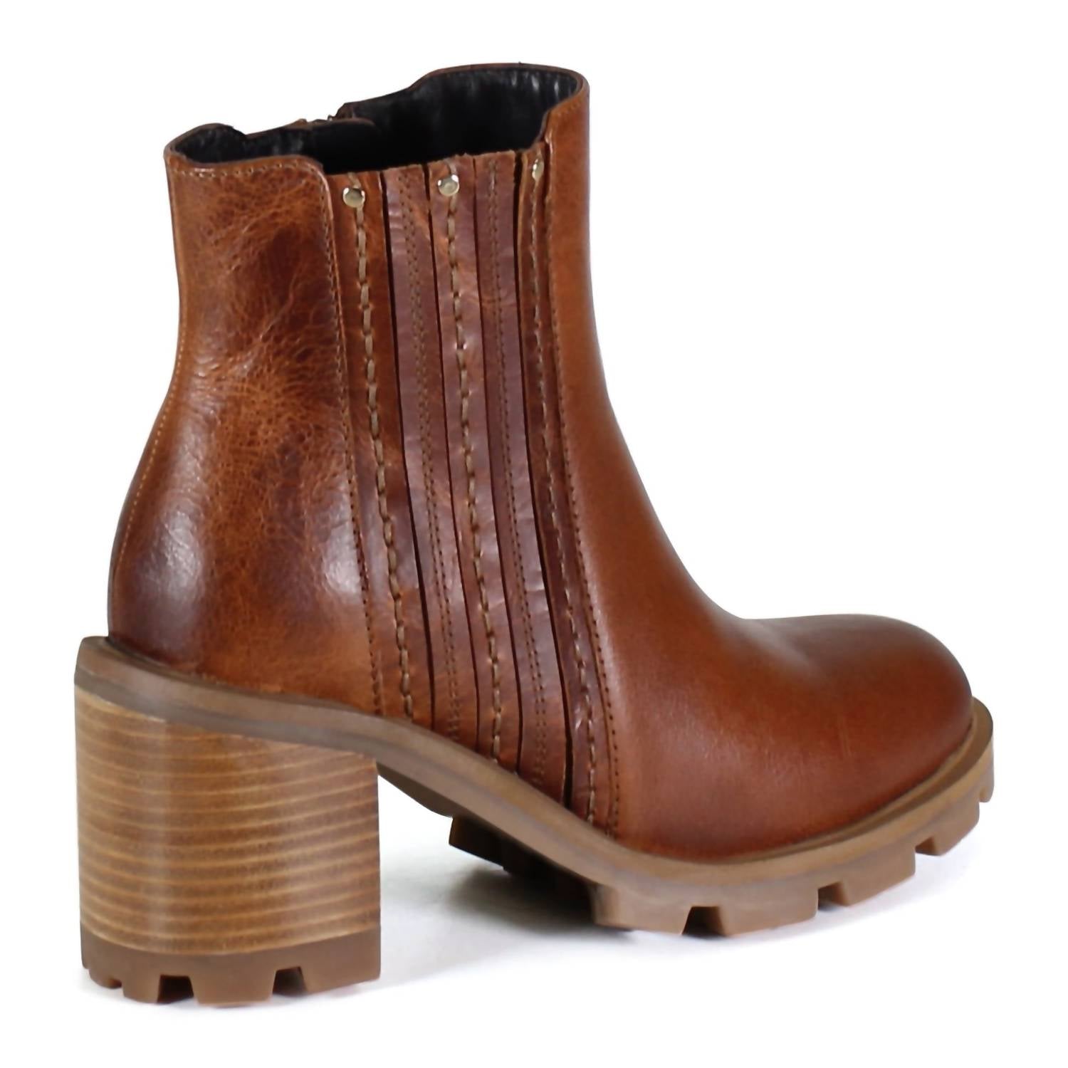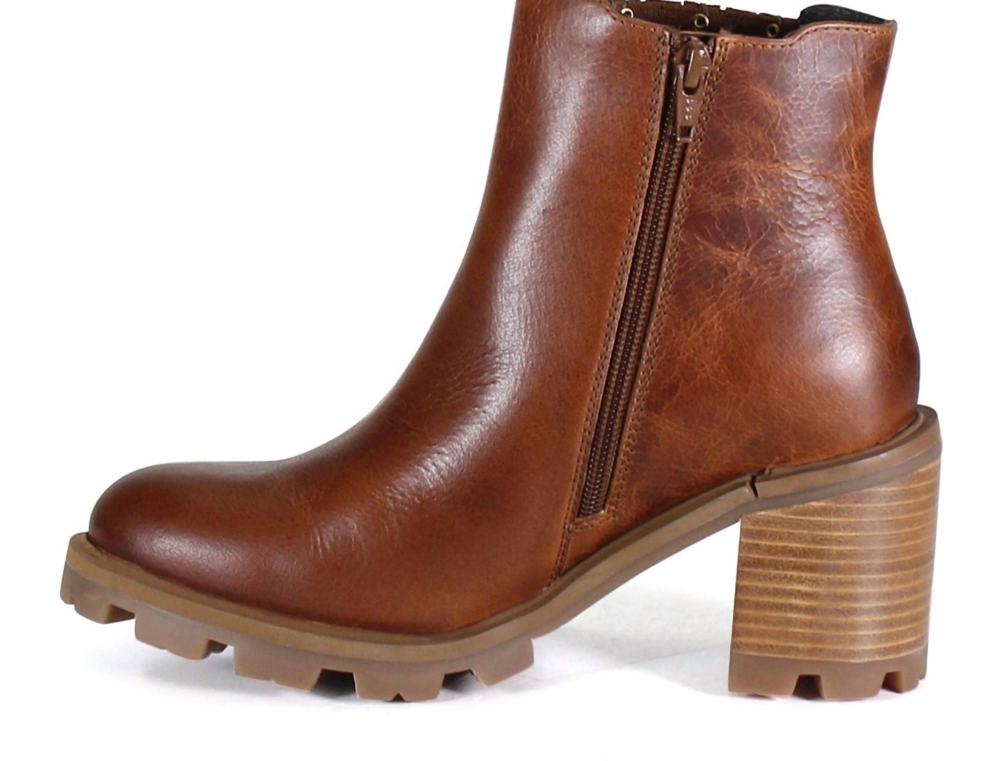 Say hello to the perfect, most versatile boot. The ankle height makes this style easily transition from day to night. Wear them with your favorite skinny jeans and tee for a more laid back look, or pair them with your favorite mini dress and jacket for a night out on the town. Elevate your style with the Women's Spice Berry Boots by DIBA True, crafted from genuine leather in a versatile tan shade. Designed for women, these Chelsea boots feature a mid-height block heel (2 1/4"-3") and a round toe for superior comfort and style. The boot's lug sole offers durability and grip, while burnished and whip stitching elements add unique detailing. Perfect for both everyday wear and special occasions, this ankle bootie is a chic addition to any wardrobe.