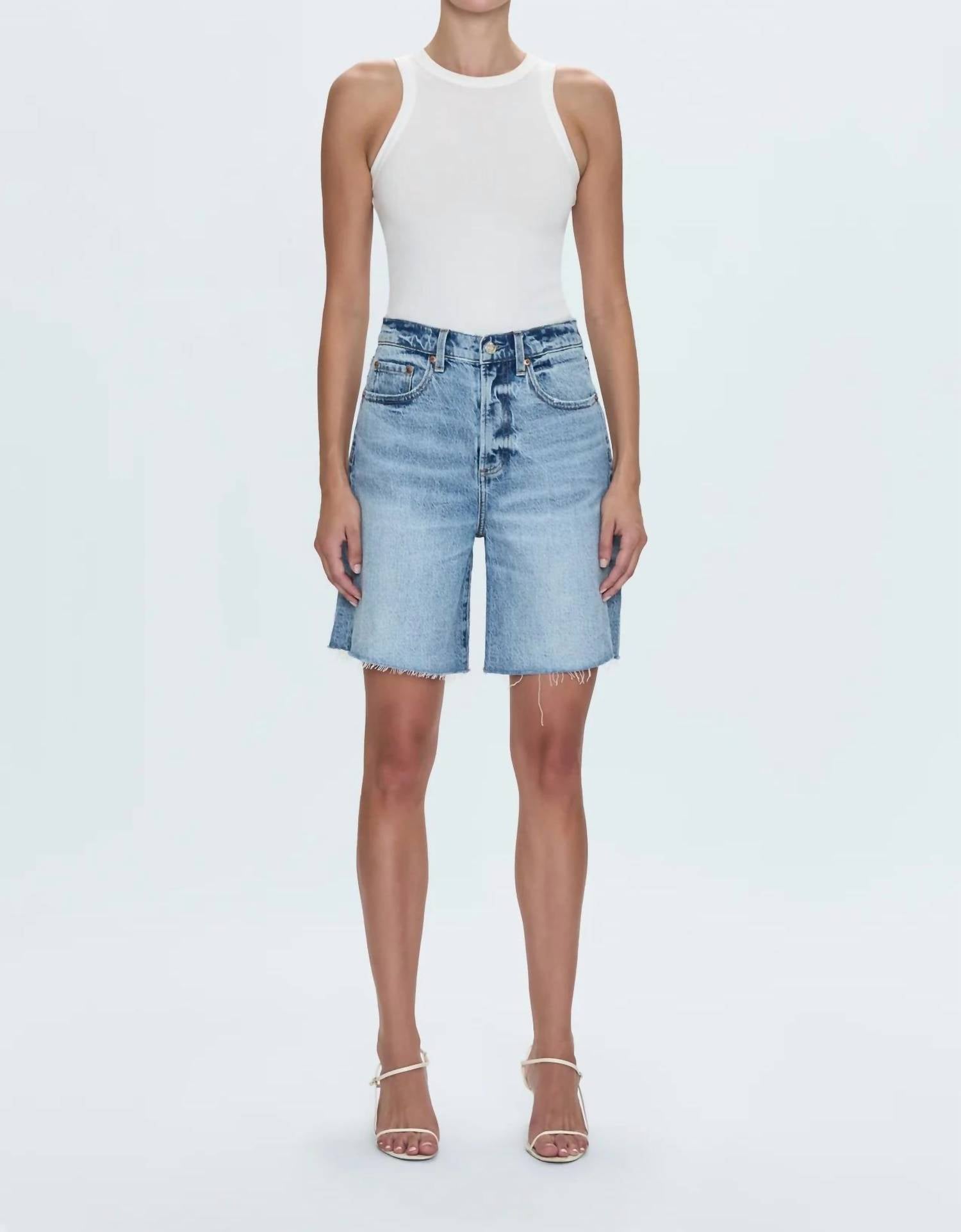 High-waist is here to stay and we especially love this style short. Embrace effortless summer style with the Kaylee High Rise Pinched Loose Short by PISTOLA, an essential addition to any vacation wardrobe. Crafted from a comfortable cotton blend featuring 77% Cotton, 22% Tencel, and 1% Spandex, these shorts are designed in the chic Boulder color. They offer practical pockets and a flattering solid high waist with a button closure. Imported and easy to maintain, these shorts are machine washable and can be tumble dried for convenience. Specifications: Rise 12", Inseam 8", Leg Opening 23 3/4".