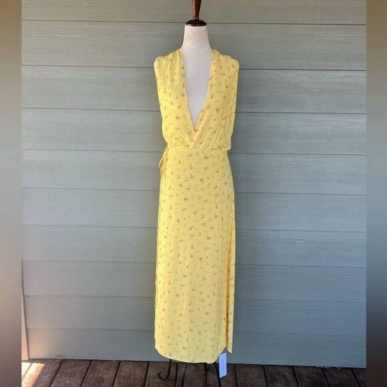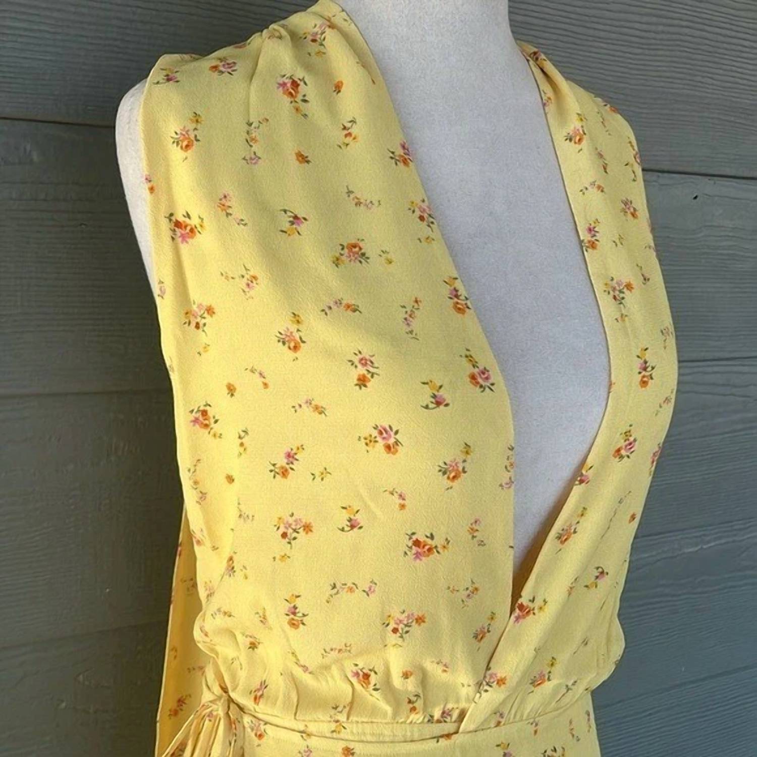 The perfect length dress does exist. Introducing the Sirena Midi Wrap Dress by Rumored, a stunning piece that's perfect for any vacation occasion. This sleeveless, yellow floral dress exudes spring vibes with its wrap silhouette and elegant V-neckline. It features a convenient tie closure to ensure a flattering fit. Designed in a maximalist trend, this dress is both vibrant and chic, setting you apart in any setting.