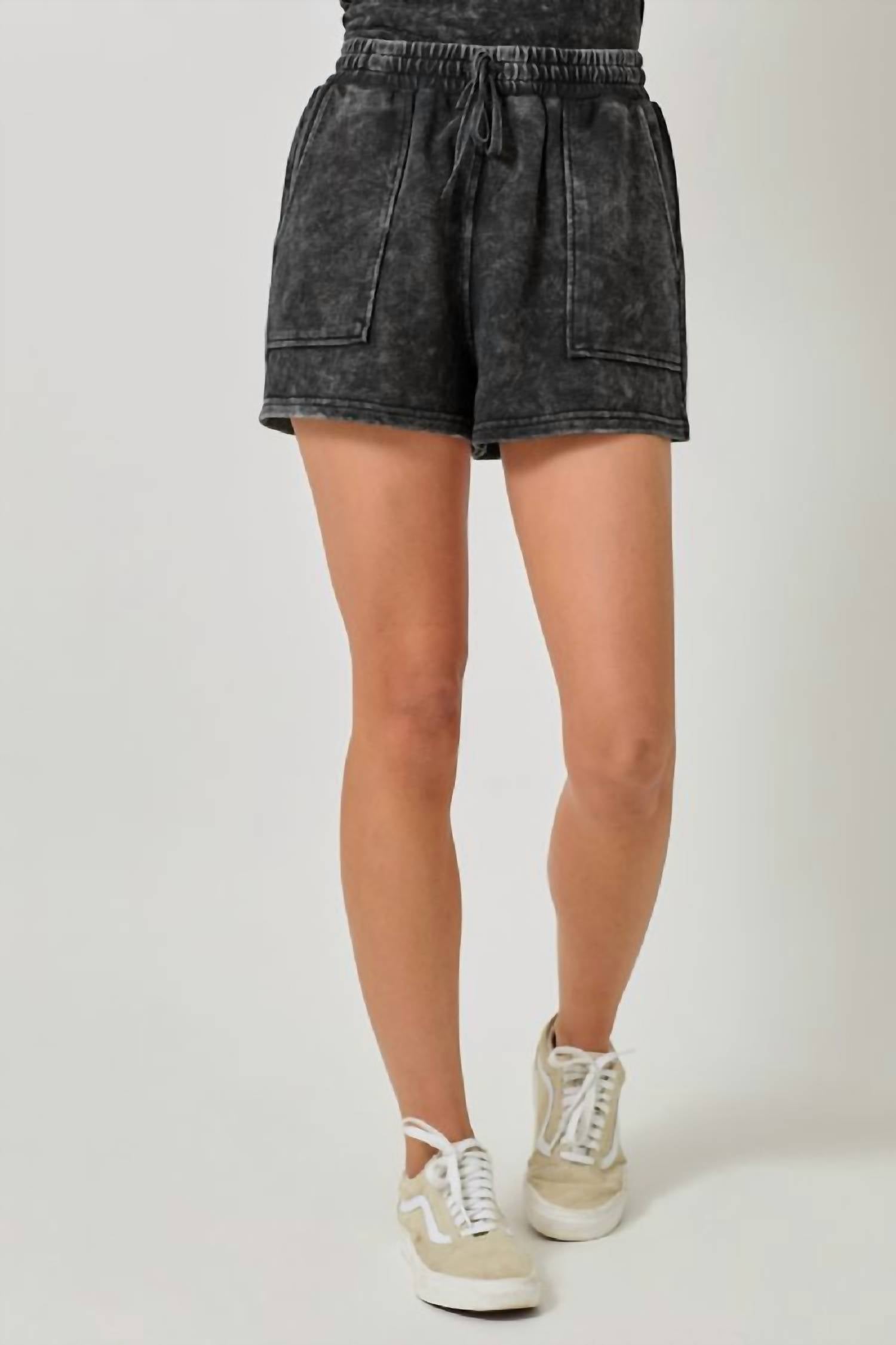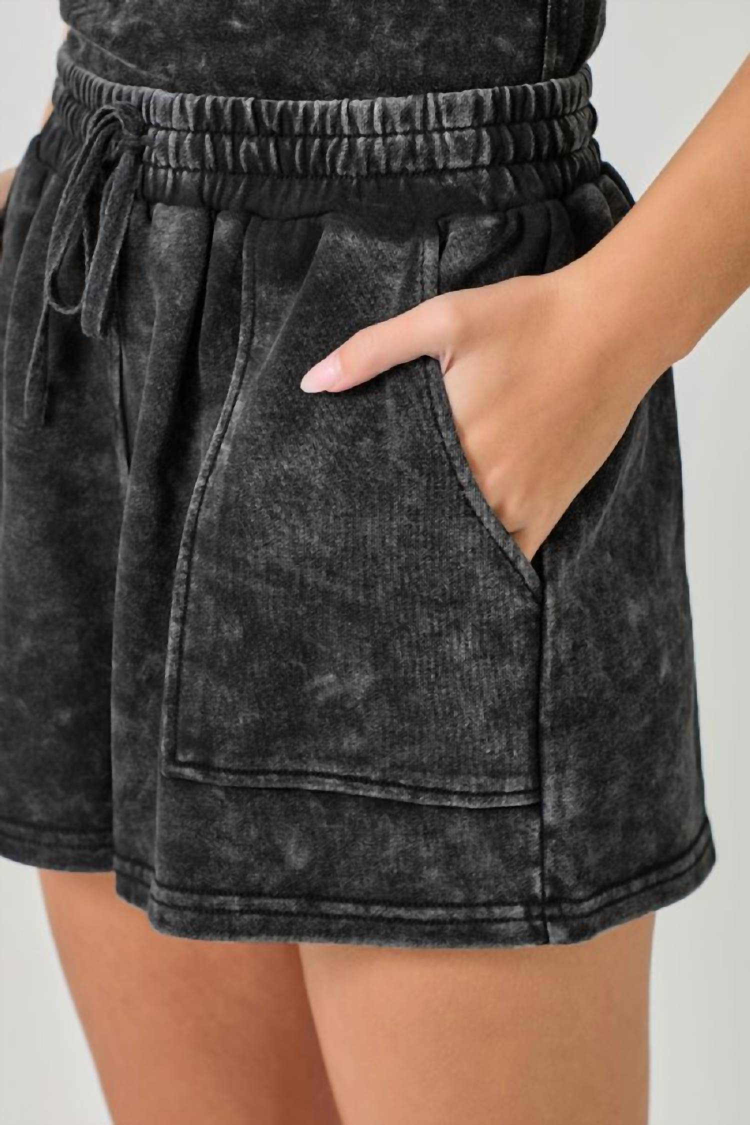 High-waist is here to stay and we especially love this style short. Elevate your athleisure wardrobe with the Bowie Terry Shorts by mystree, a minimalist piece in a textured Washed Black perfect for vacations. These high-waist maternity shorts feature an elastic waistband with a drawstring, complemented by front patch pockets for practicality. Made from a comfortable blend of 96% Cotton and 4% Spandex, they offer a pull-on closure for easy wear. Dimensions include a rise of 13" to 14" and an inseam of 3", with waist sizes ranging from 28" to 32". Care instructions: Machine wash.