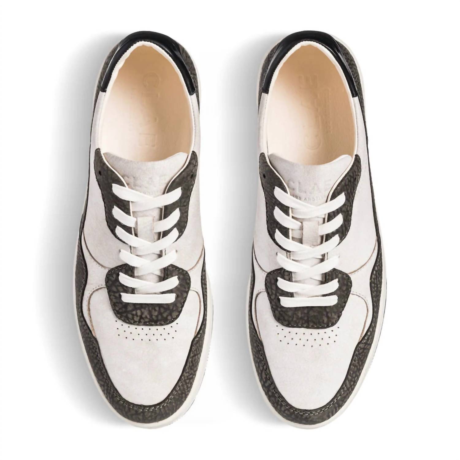 Introducing the Men's Sneakers by CLAE, a unique blend of skate culture and early race car driver footwear. Handcrafted from exquisite Italian Nappa leathers and soft Nubuck sourced from certified tanneries, these shoes assure both durability and style. The interior features a lining made from leather and recycled polyester, ensuring a comfortable fit that ages beautifully. Built on CLAE's Premium Court (PC) sole, these sneakers optimize traction, making them perfect for the streetwear trend and ideal for summer vacations.