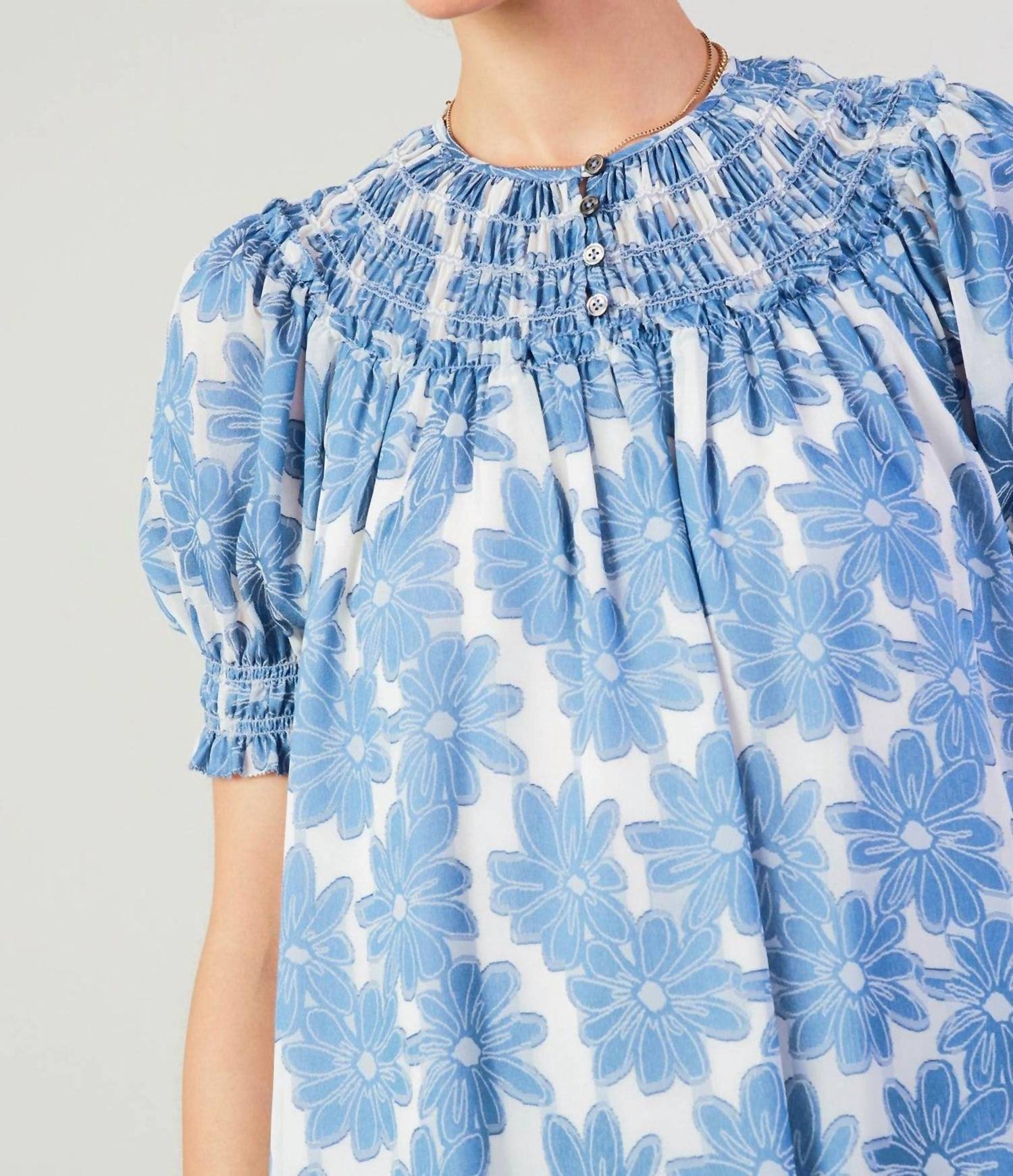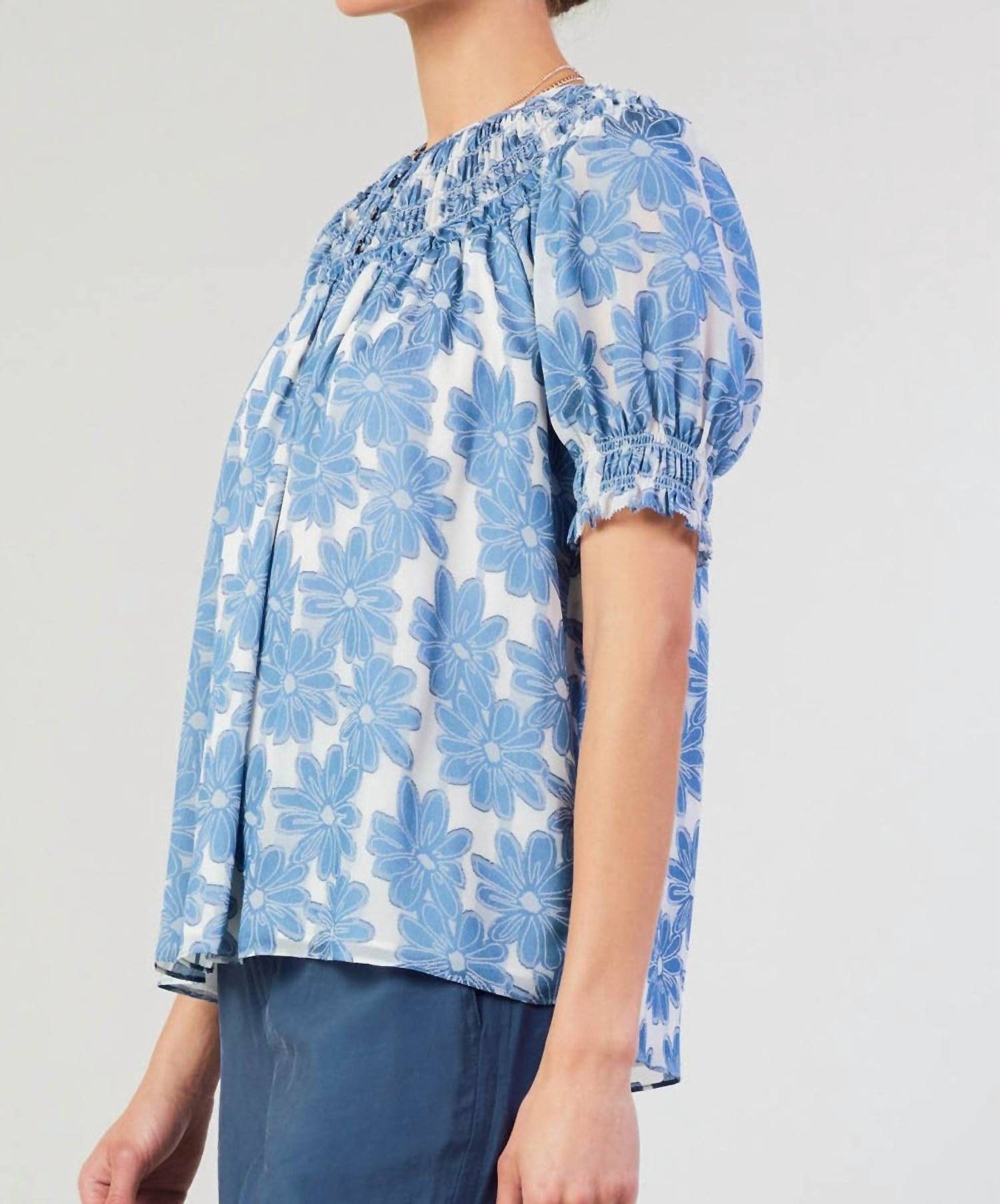 A timeless blouse that will never go out of style. This floral jacquard blouse is designed with short sleeves, a round neck, and a smocked yoke for a flattering fit. Made from 100% polyester.