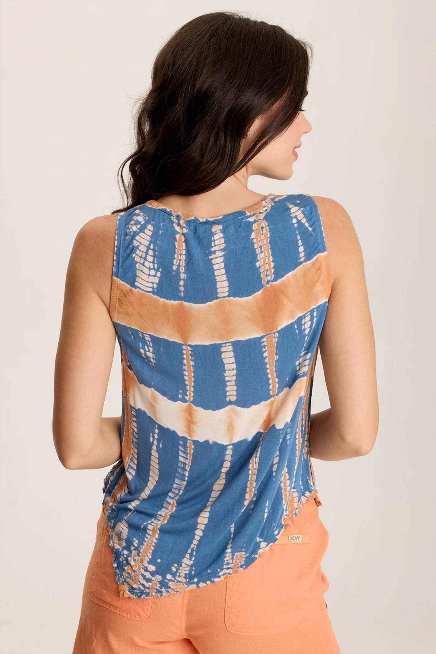 The perfect tank top for those warmer weather seasons. Introducing the Leka Tank Top by XCVI, a stylish vacation must-have for your summer wardrobe. This sleeveless tank, in a vibrant Karma Wash tie-dye, features a boatneck cut with bra-friendly straps for comfortable wear. Made from luxurious Luta Rayon Jersey (94% Rayon, 6% Spandex), it offers flexibility and ultra-soft comfort. Crafted with a pull-on closure and measuring approximately 22.75" in length at the back, this top is machine washable for easy care.