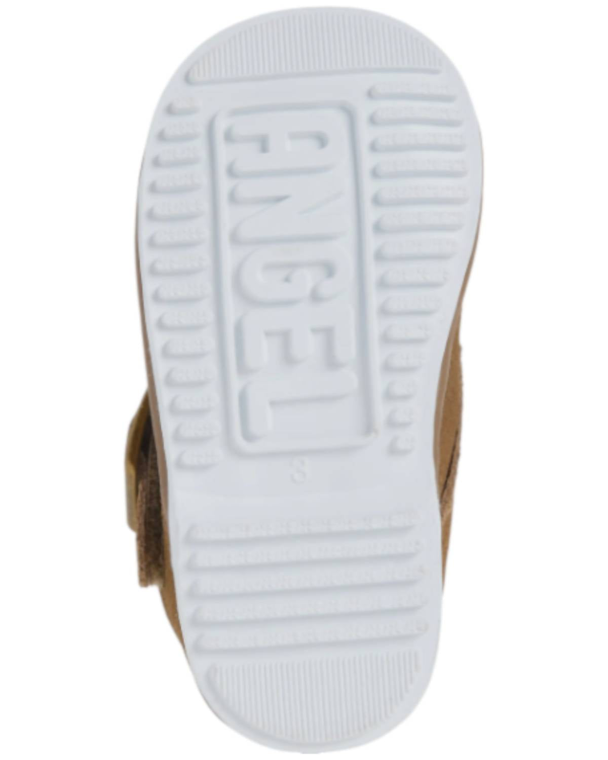 Discover the charming and comfortable Finch Crib Boots by L'Amour, crafted for baby boys in a versatile khaki hue. These boots feature a lightweight suede leather upper, providing a soft feel and a stylish look, complemented by a round toe design. The Velcro closure with an antique brass buckle allows easy on and off, while the padded collar ensures extra comfort around the ankle. Care for these booties by gently brushing with a suede brush and avoid water exposure to maintain their quality.