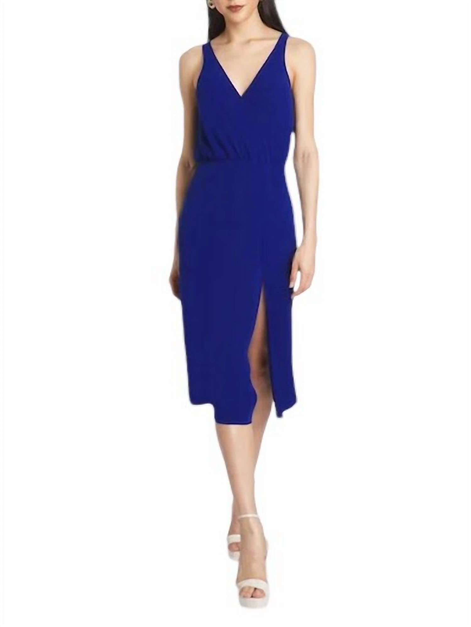 This midi dress combines elegance with a touch of flirtiness. It features a crossover front V-neckline, an elastic waist for a flattering fit, and a front leg slit for added allure. Made from 100% polyester, it's easy to care for with a machine wash in cold water.
