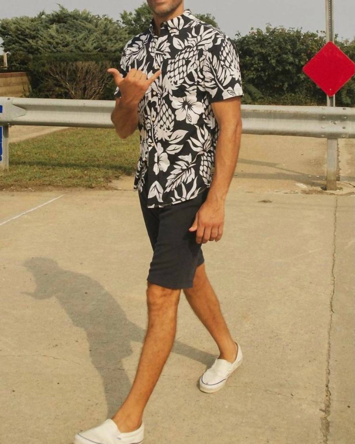 This classic short sleeve shirt features a joyful print and a button-down collar. It has one pocket and is made from our top-selling cotton stretch woven fabric. Ideal for making a statement, whether worn casually or under a navy blazer for dinner.