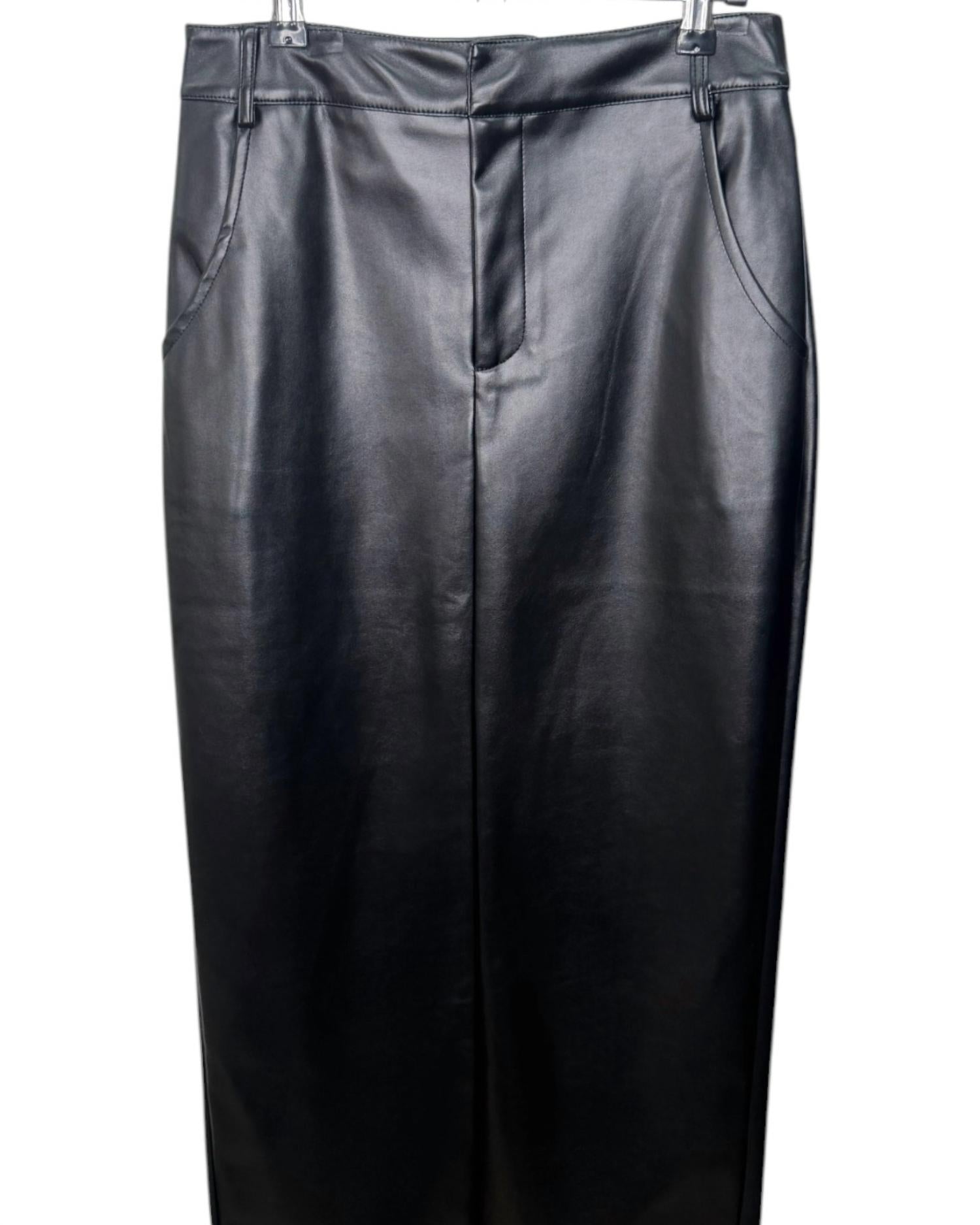 Tuck in your favorite tee for a more casual yet feminine look. Introducing the Needii Women's Faux Leather Skirt in Black, a chic addition to your spring wardrobe. This maxi-length skirt features a sleek leather design with a stylish back slit, perfectly blending sophistication with a flirty edge. Composition: 55% Polyester, 45% PU. Closure: Hook and Eye Closure. Pockets: Yes.