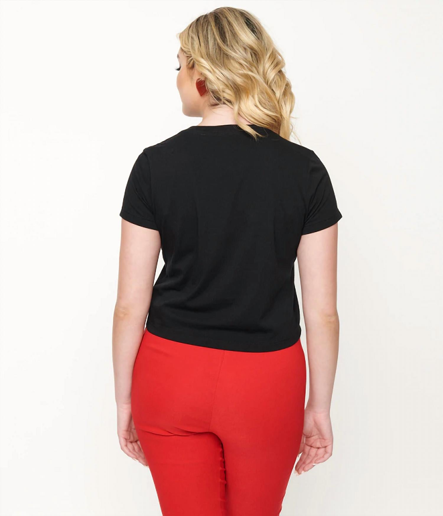 Thsi Tee is crafted in a soft fabric blend with Hello Kitty graphic print, the crew neckline, sweet short sleeves, and relaxed fit. 65% Polyester 35% Cotton. Machine Wash, Tumble Dry. Unlined. Material Has Stretch