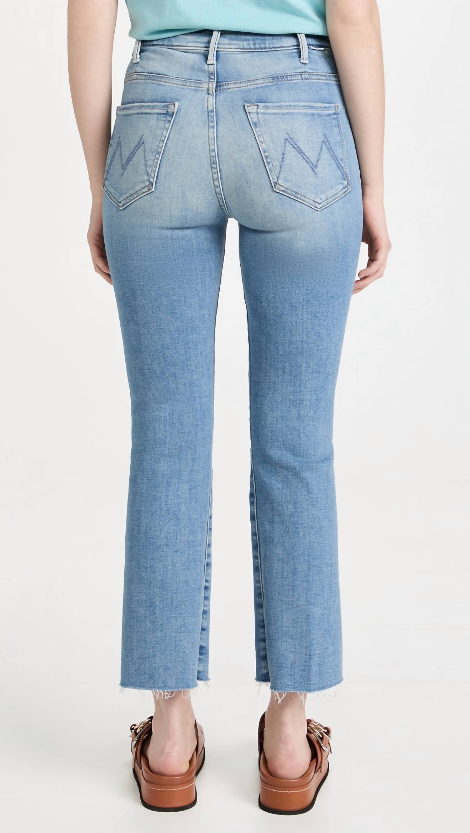 The perfect cropped jean for those transitional seasons. Meet the Hustler Ankle Fray Jeans by Mother, designed in a stylish Au Revoir hue perfect for any modern wardrobe. These women’s jeans boast a high-rise, relaxed fit with a straight-leg silhouette, and feature raw cuffs and distressed edges for that effortlessly chic look. Crafted from a mid-weight cotton blend composed of 81% cotton, 11% lyocell, 6% polyester, and 2% elastane, they offer stretch and comfort with a rise of 10.75 inches and an inseam of 26.75 inches. Made in the USA of imported materials, this pair comes with a button closure and zip fly and is complete with convenient slant front and patch back pockets. For care, simply machine wash cold to keep them looking their best.