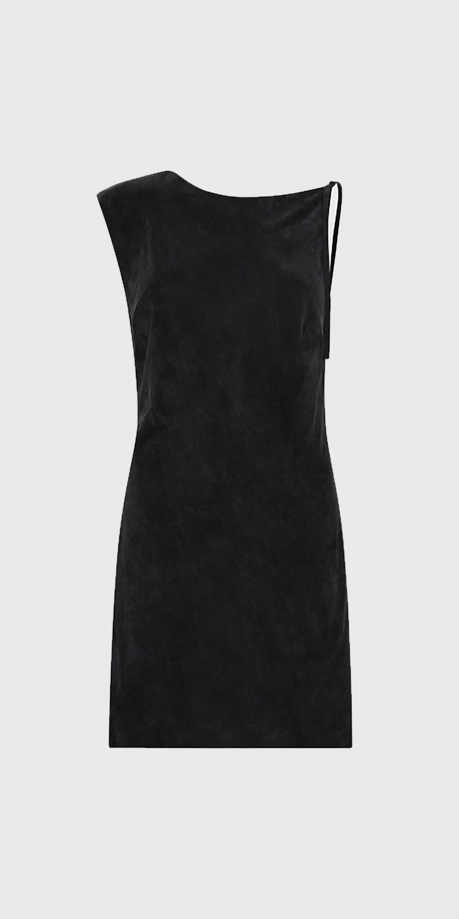 The perfect mini dress for those warmer months. Embrace the allure of the Sophia Drape Mini Dress by St. Agni, a flawless blend of style and comfort in luxurious black. This sleeveless mini dress is crafted from 59% LENZING™ Lyocell filament and 41% ECOVERO™, ensuring a soft touch and eco-friendly choice. With a pull-on closure, it features an asymmetrical open draped neckline and a bias cut silhouette, finished with adjustable back straps for the perfect fit. Please note, this item is final sale. Model is 5ft 5in and wearing a size S.