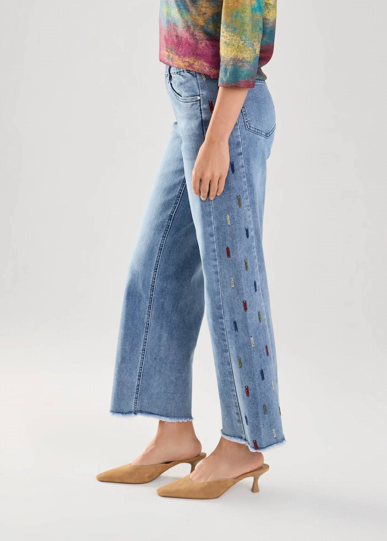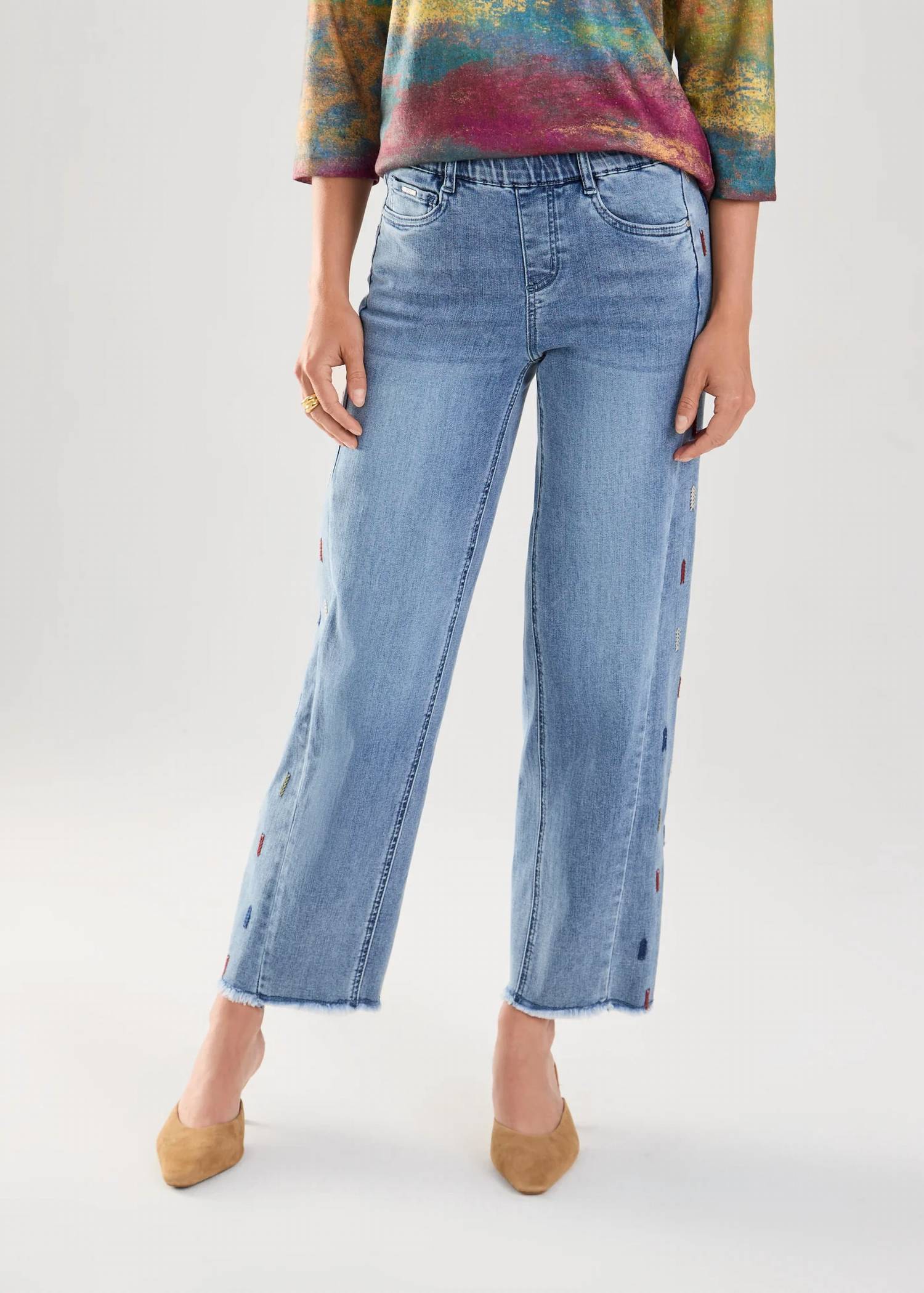 This statement denim combines beautiful side embroidery, genuine real pockets, and a fashion-forward frayed hem. The perfect piece for adding personality to any outfit.