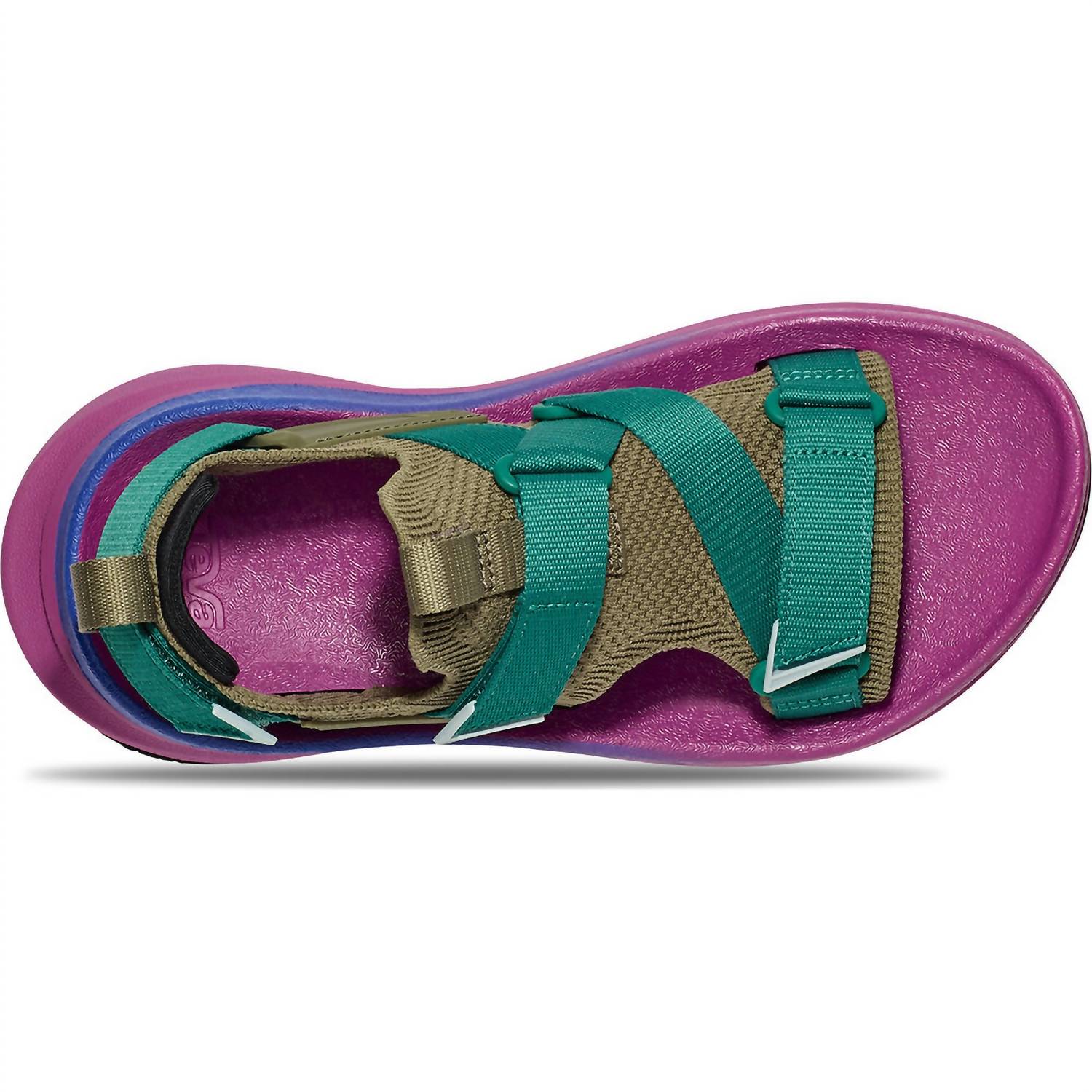 Classicly cute and all-day-wearable. We love this sandal. Step into summer with the Women's Aventrail Sandal by Teva, a perfect blend of vibrant style and comfort. Featuring a rich Burnt Olive/Vivid Violet color palette, these sandals offer an open toe design and a chunky heel with a height of 1.319 inches, embracing the low heel trend. Ideal for vacations and streetwear, they effortlessly match any summer outfit with their bold look. Made specifically for women, they make a chic statement while supporting your feet on sunny adventures.