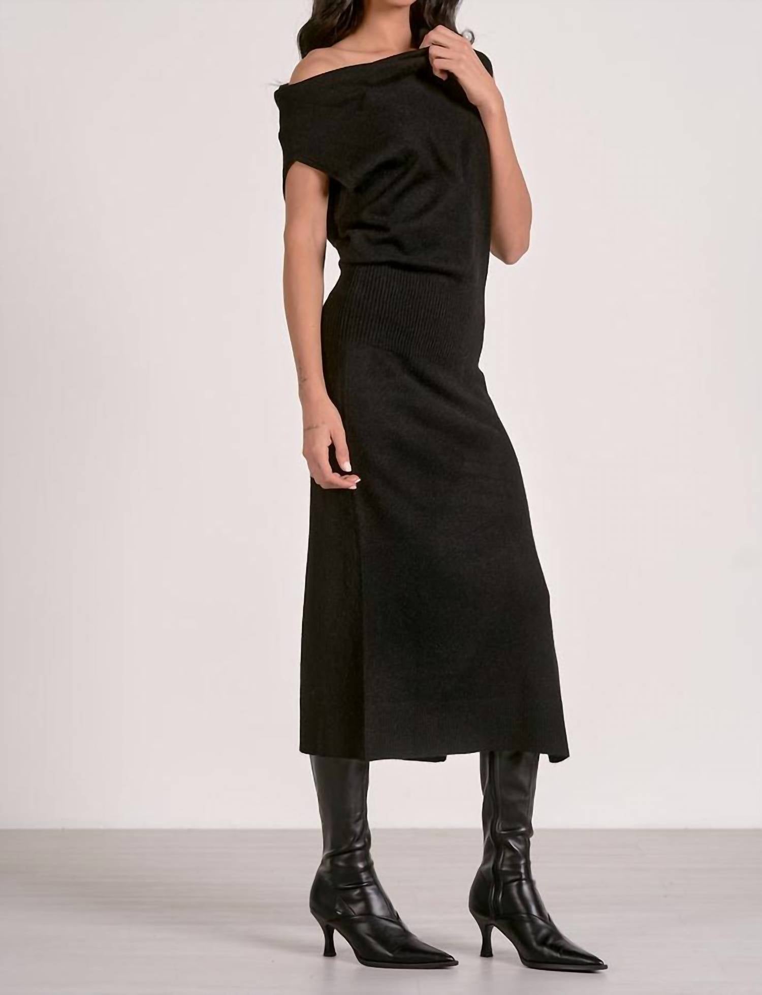 A midi dress so versatile, your options for wearing it are endless. Elevate your evening wardrobe with the Angelina Off the Shoulder Sweater Dress by ELAN, perfect for your next Thanksgiving event. This elegant black dress features short sleeves and an alluring off-the-shoulder neckline, embodying the monochrome trend in a shift silhouette. Crafted from a blend of 43% Acrylic, 31% Polyester, 21% Nylon, and 5% Wool, the midi-length dress offers both style and comfort. Closure: Pull On. Care: Hand wash and line dry for lasting wear.