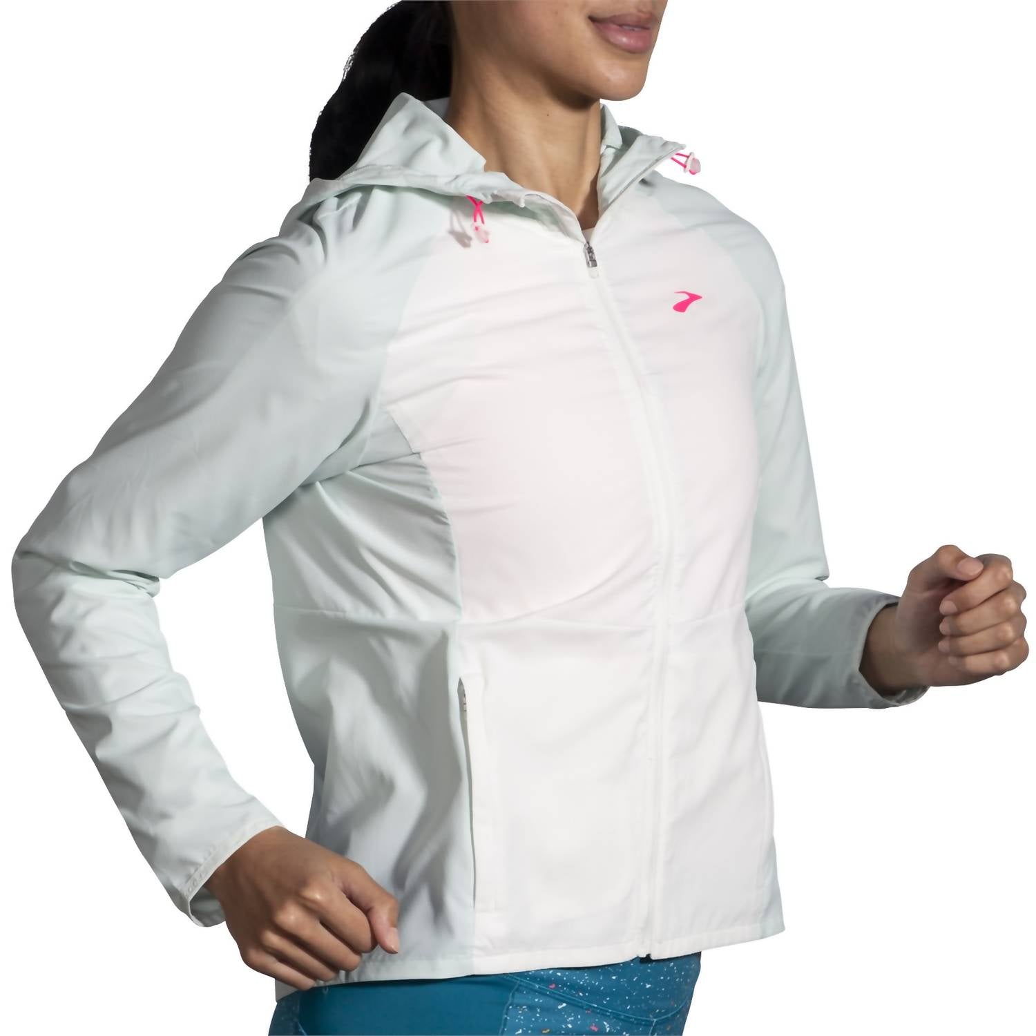 Meet the Women's Canopy Jacket by BROOKS, a perfect blend of performance and sustainability. Designed with long sleeves and crafted entirely from polyester, this versatile jacket offers excellent wind and water protection, while ensuring breathability. Thoughtfully packable and equipped with three practical pockets, it's a reliable companion for any weather. With a hooded neckline and zip closure, it combines function with style. Care for it easily with machine wash and tumble dry instructions. Color: Mint Mix.