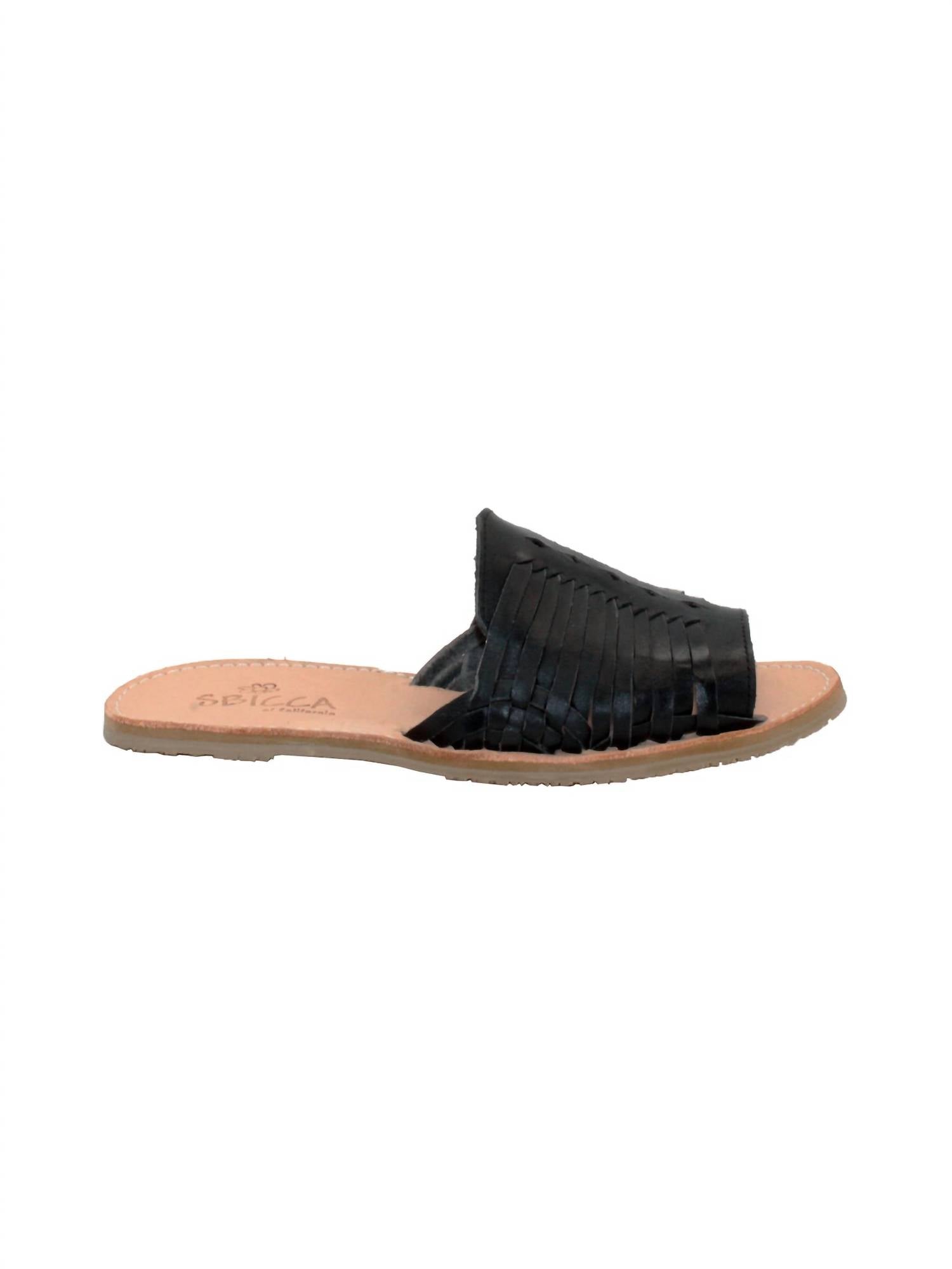 Classicly cute and all-day-wearable. We love this sandal. Sbicca presents the Lawrin Huarache Sandal in black, a masterful fusion of traditional artistry and modern design. Crafted with a handwoven leather upper and partial leather lining, this open-toe huarache slide provides both comfort and style with its EVA padded midsole and textured rubber outsole. Perfect for summer occasions, this flat heel sandal with a round toe shape nods to the original 70s Sbicca designs, offering a shoe that molds perfectly to your feet. Ideal for holiday parties, this versatile piece seamlessly pairs with swimsuits and maxi dresses.