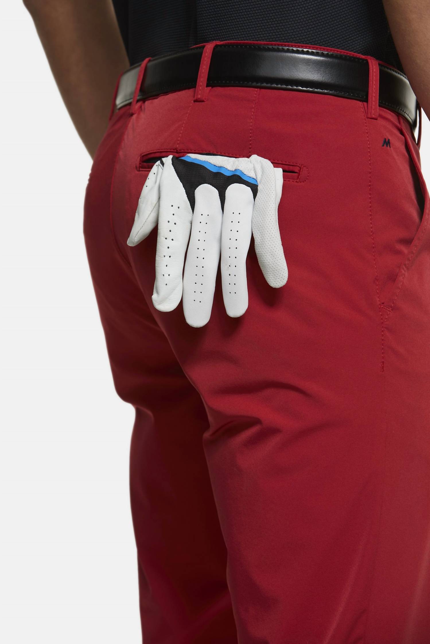 Experience premium comfort and performance with the Men's Augusta Modern Fit Pant by Meyer, crafted for active wear with a modern twist. Designed with a flattering slim fit and a sporty appeal, these chinos in vivid red are composed of 88% Polyamide and 12% Elastane, ensuring a breathable, water-repellent, and quick-drying experience. Perfect for golf enthusiasts, they feature a concealed zip closure and a thoughtfully designed interior with rounded French slash pockets, a practical shirt stopper, and a silicone-lined back pocket for securing your golfing glove. Enjoy versatile style and function, tailored to keep you looking and feeling sharp on and off the course. Care: Machine wash and lay flat to dry.
