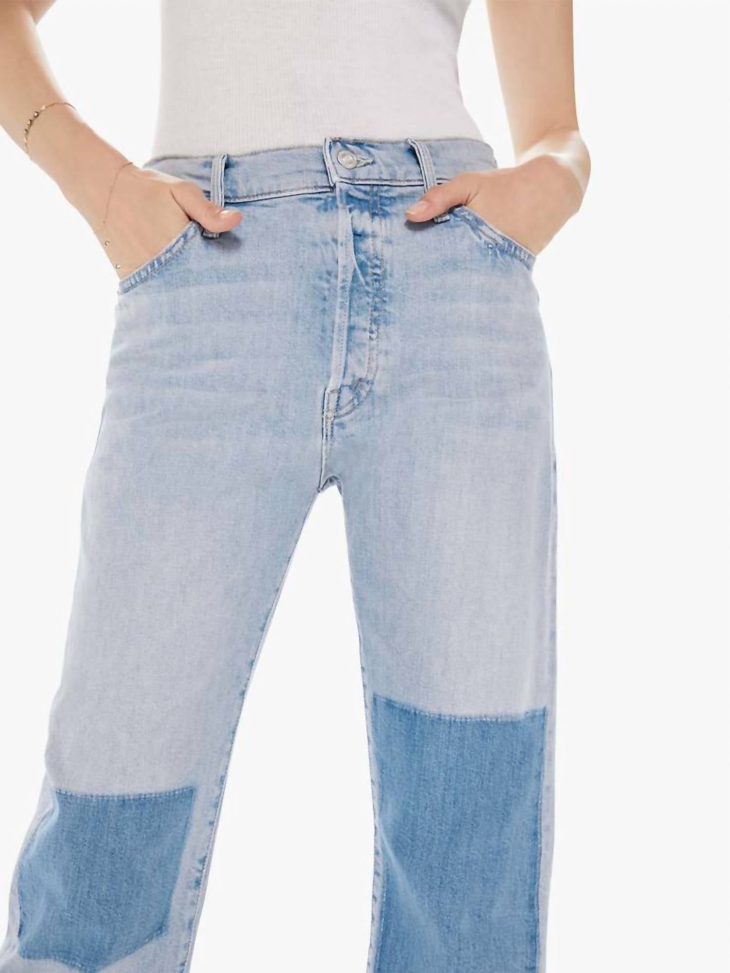 Comfortable and stylish, we love this cropped jean for all of the obvious reasons. Meet the Ditcher Crop Jeans by Mother, offering a relaxed fit with a slouchy straight leg in a stylish light-blue wash called Pre-Party. Made in Los Angeles, these jeans boast a semi-rigid SUPERIOR denim crafted from 98% Cotton and 2% Elastane. With a high rise and button closure, they feature subtle whiskering, fading, and contrast denim patches at the knees for a trendy edge. Care is simple with a machine wash method, making them practical for everyday wear.