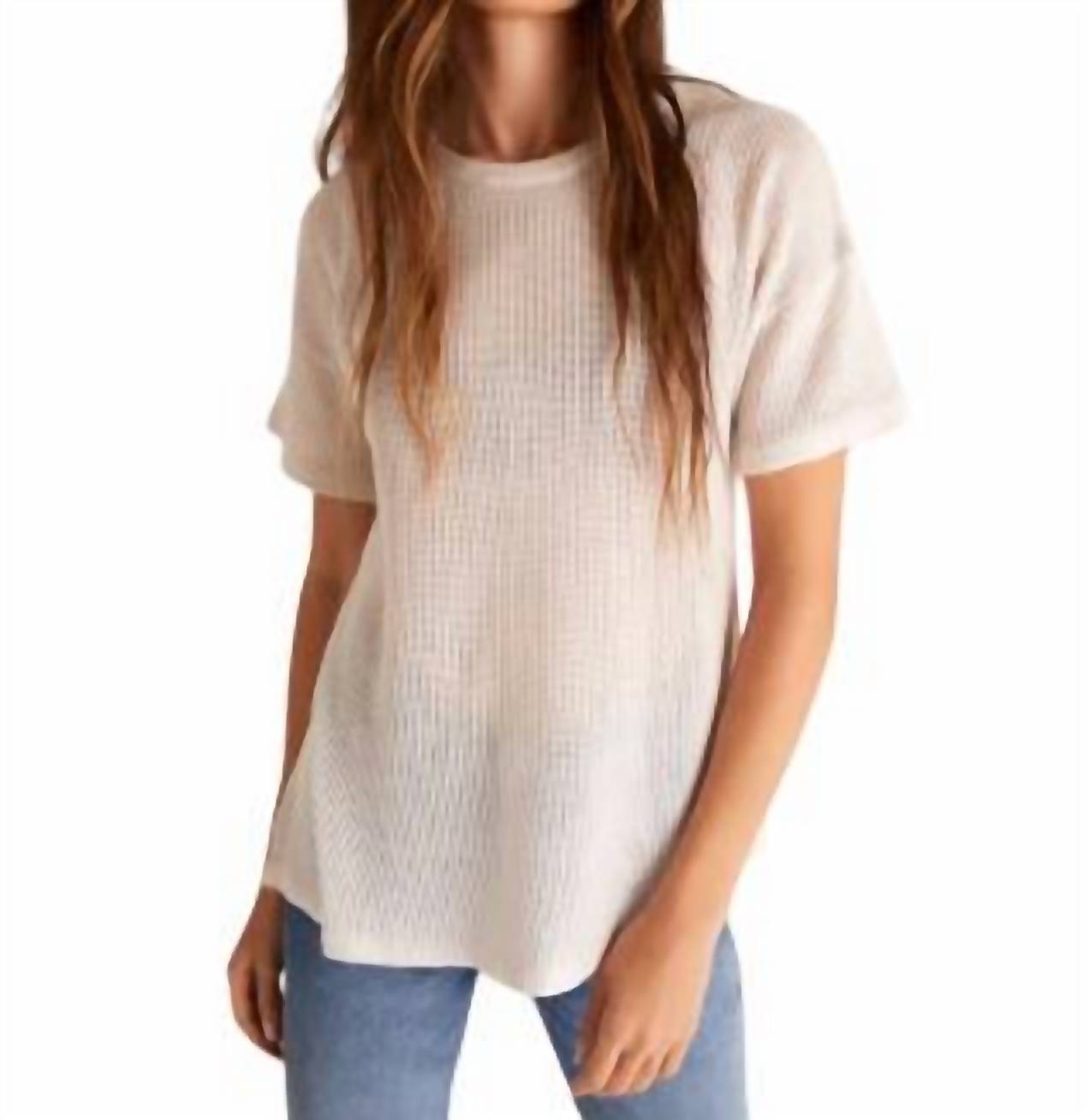 Introducing the Endless Summer Sweater Tee by Z Supply, a perfect blend of comfort and style for casual outings. This short sleeve top, crafted from a breathable 60% cotton and 40% rayon blend, is ideal for layering over a tank or bralette. Enjoy effortless dressing with its pull-on closure and classic crewneck design. Available in a textured sandstone finish, this crew neck staple embodies relaxed elegance without the fuss of high maintenance.