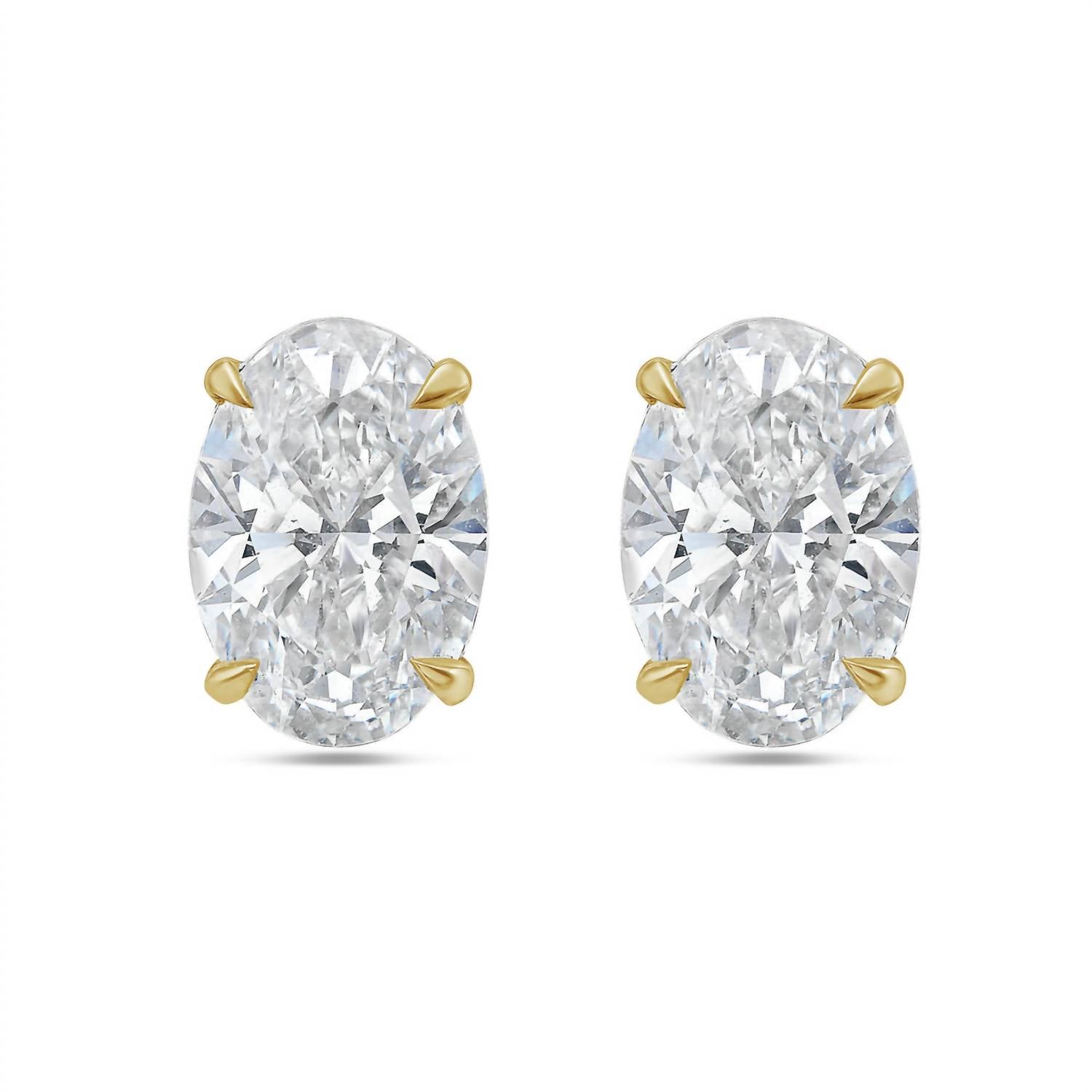 Easy and elegant earrings to complement any outfit. Introducing the 10.00 Cts Lab Grown Oval Cut Stud Earrings by Diana M Jewels, a luxurious addition to any fine jewelry collection. Expertly crafted from 14k Yellow Gold, these earrings feature lab-grown diamond stones in an oval shape, showcasing DEF color, VS clarity, and an excellent cut. The prong setting secures each diamond, enhanced by a post clasp for a secure fit. Ideal for April birthdays, these exquisite pieces embody elegance and sustainability.