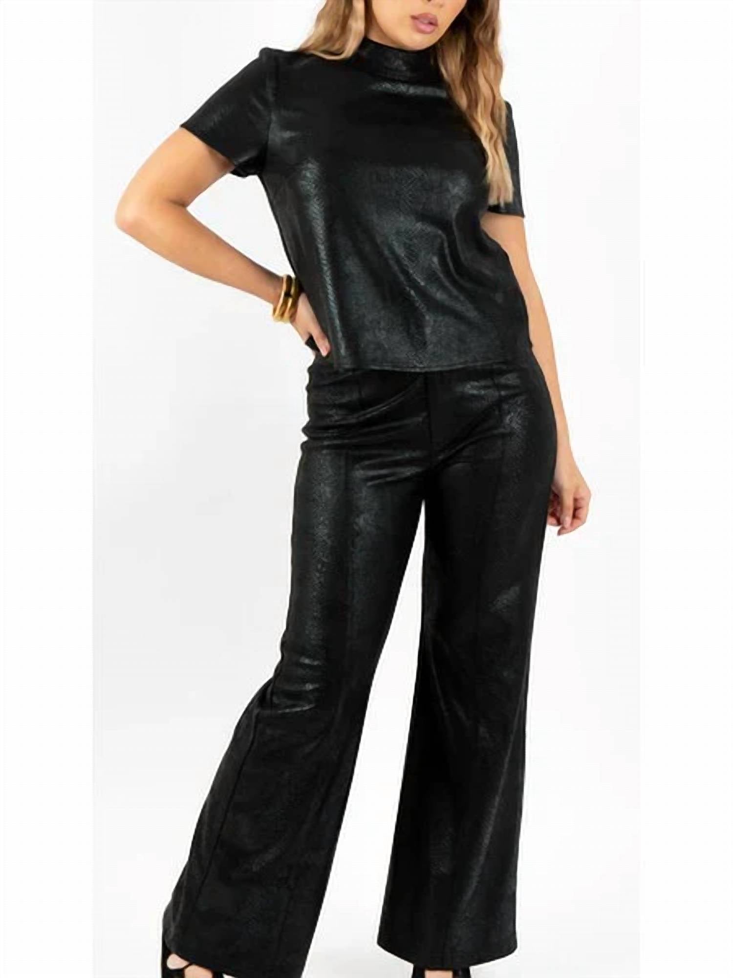 Experience the high-fashion allure designed for modern sophistication. Boast a high-rise waist, wide leg style, and a relaxed fit, ensuring both comfort and elegance. Adorned with a chic animal pattern in classic black. Feature practical pockets and a secure hook and eye closure. Perfect for an evening event, ultimate choice for women seeking a winter workwear trend. Hand wash.