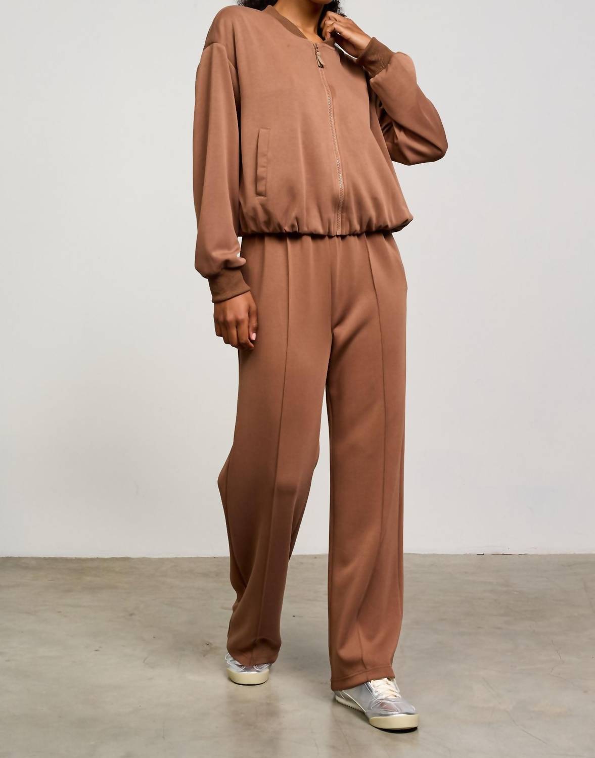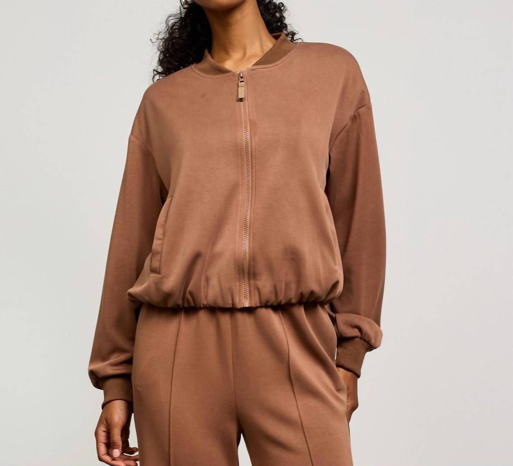A jacket so versatile you can literally wear it with anything. Experience the sophisticated style of the Murphy Scuba Jacket by SKIES ARE BLUE, perfect for travel and winter wear. This minimalist women’s casual jacket in a solid coffee hue features long sleeves, a classic collar, and a full zip closure for effortless elegance. Crafted with a mix of 48% Polyester, 46% Modal, and 6% Spandex, it offers a comfortable and relaxed feel with its drop shoulder and gathered elastic hem. Care is easy with hand-washing instructions ensuring longevity.