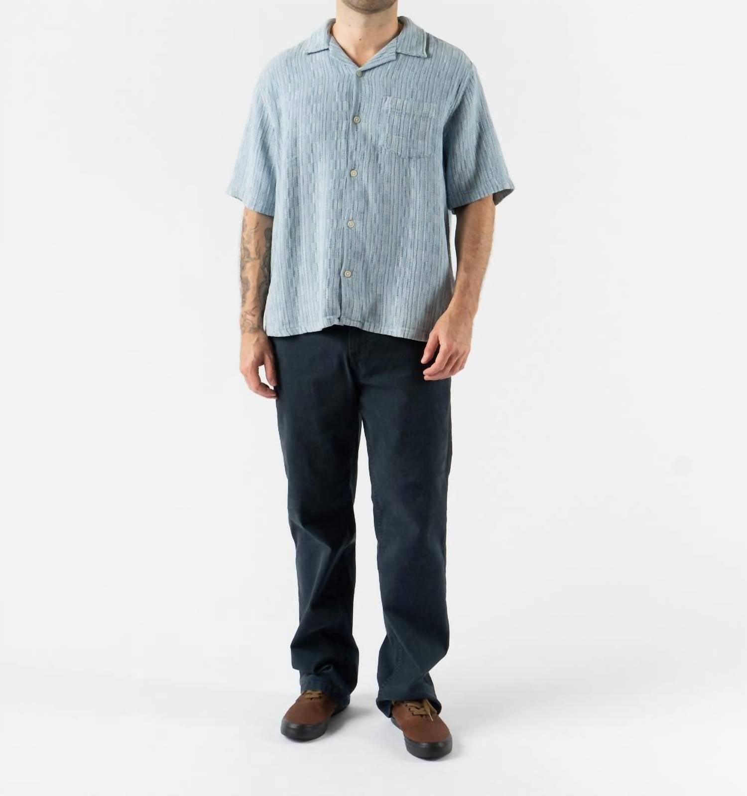 Discover the Corridor Basket Weave Shirt, a perfect blend of style and comfort for the warmer months. This men's casual button-down shirt in cool blue features short sleeves, a distinctive camp collar, and a single chest pocket for added functionality. Made from 100% cotton, this textured, monochrome piece is crafted in India, highlighting a commitment to quality and timeless design. Closure type: Button closure. Care: Hand wash.