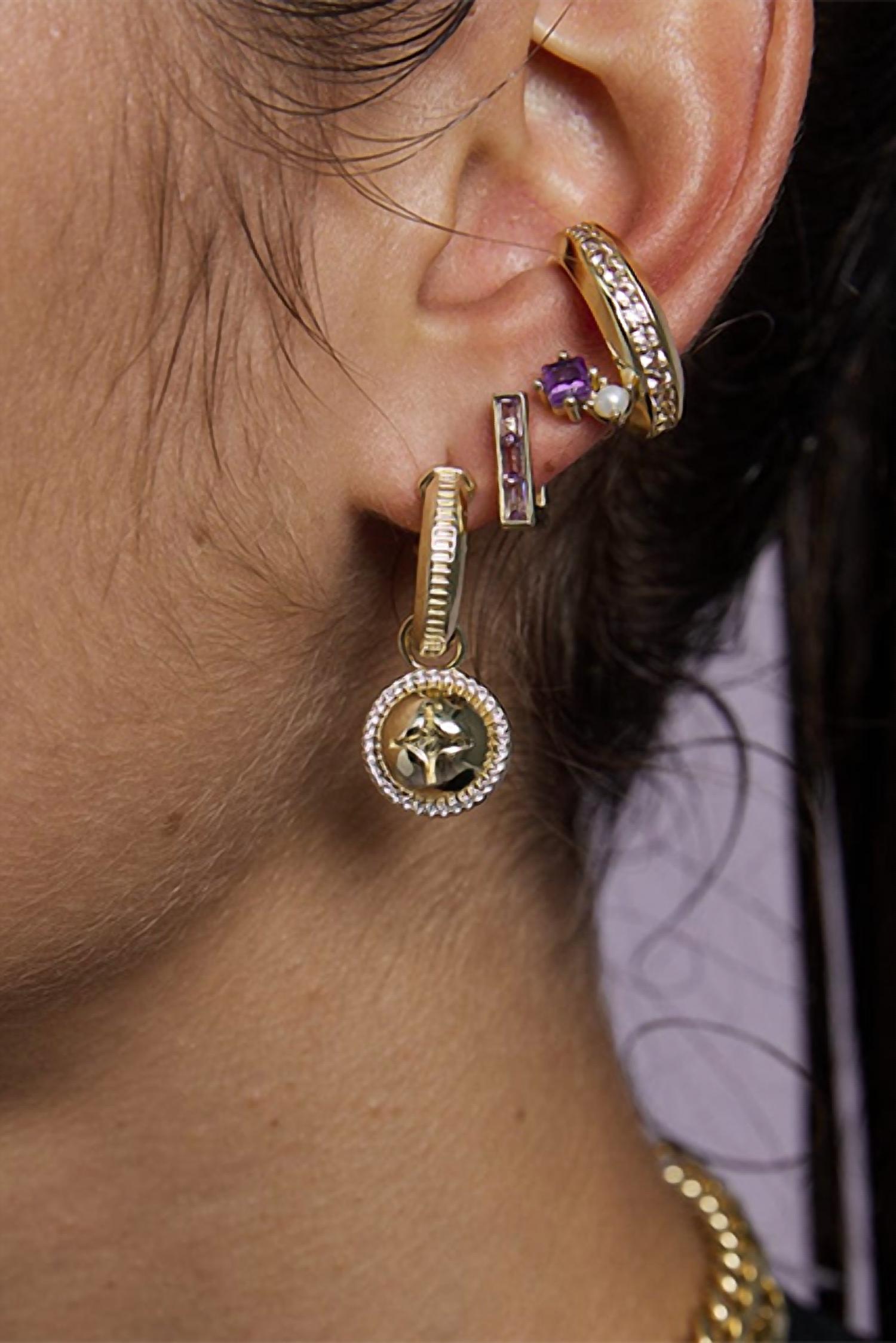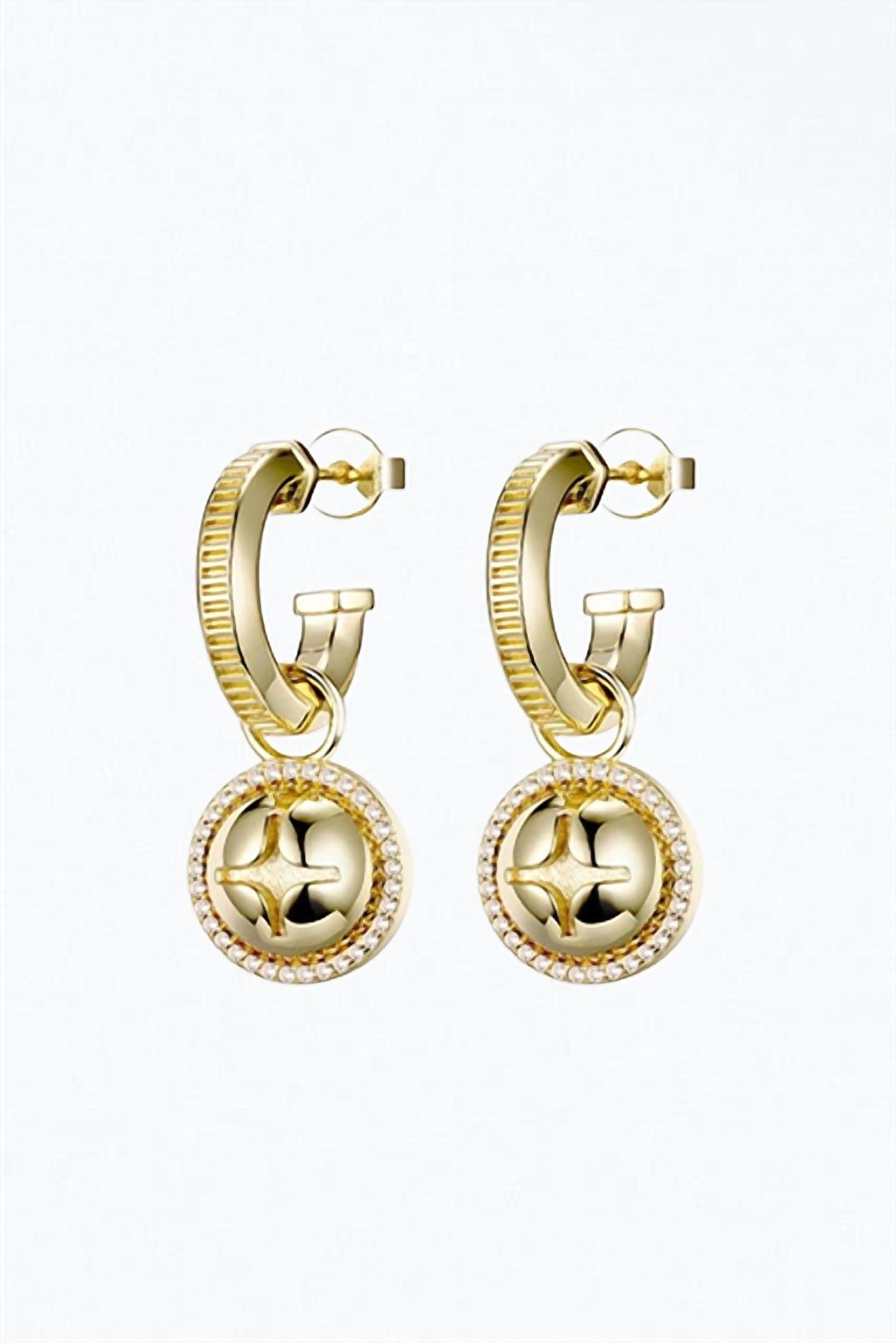 Embracing the brand's love for industrial designs, they are handmade from 18-karat gold-plated metal with a screw head charm traced in topaz gemstones that dangle from hoops. They look just as great worn solo as they do stacked with coordinating styles. Sold as a pair for pierced ears.Dimensions: 30mm total dropDetails: 18K gold-plated brass, white corundum crystal nano-gemstones, nickel-free