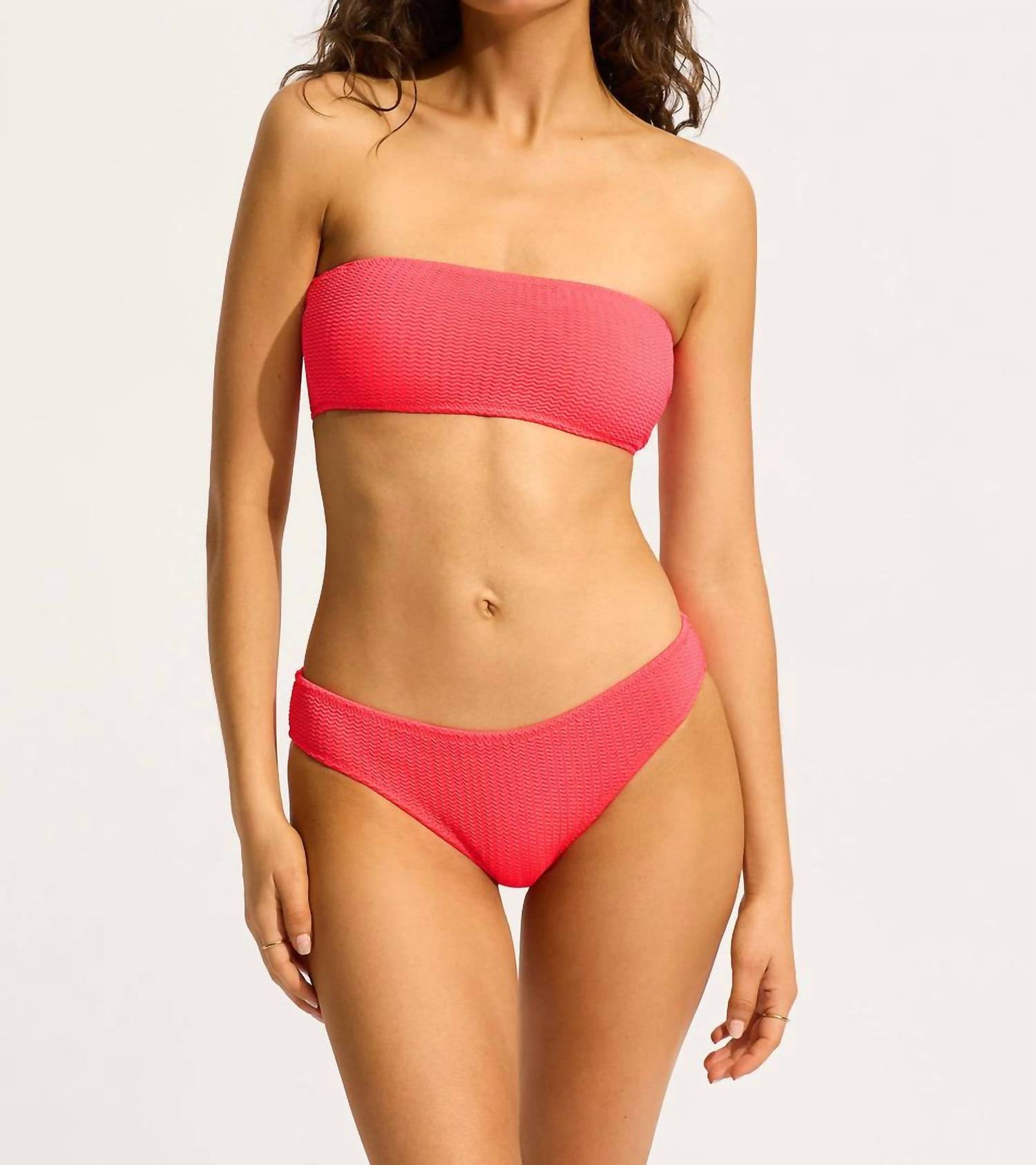 Dream of your next beach getaway in this cute little number. Pair with strappy sandals, a floppy hat, and an oversized tote to complete the perfect vacation look. Elevate your beachwear collection with the Seafolly Sea Dive Hipster Bottom in a vibrant Snapdragon hue. Designed for women, this swim bottom offers a stylish low-rise fit with medium coverage and soft edges for ultimate comfort. Crafted from a textured Nylon Blend fabric (95% Nylon, 5% Elastane), it's ideal for a minimalist summer style. Care for this hipster by machine washing and line drying to maintain its quality season after season.