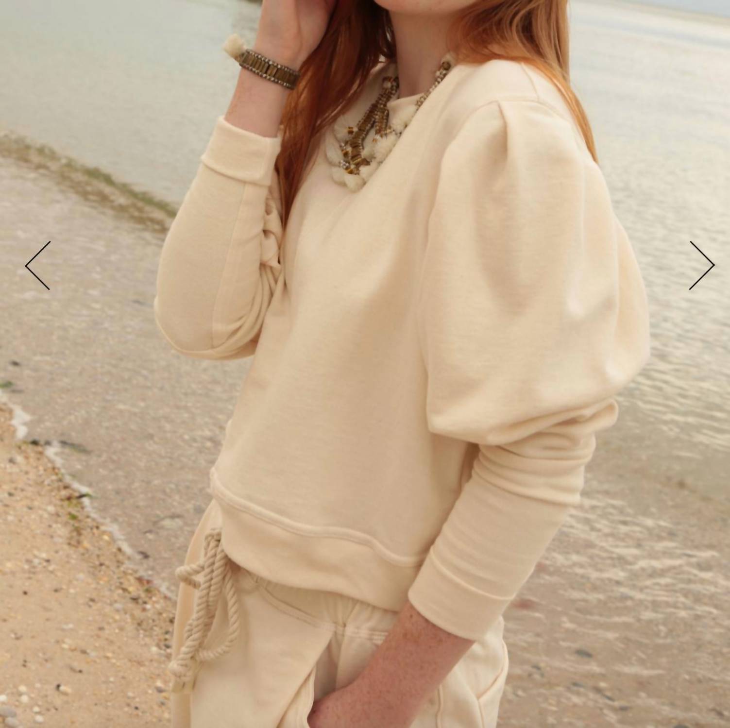 A classic fit that works just as good buttoned as it does left open. The Pleat Sleeve Crewneck top is your elevated, sustainable alternative to a classic sweatshirt, blending comfort with subtle sophistication in a modern, slightly cropped fit that hits above the high hip. This top features feminine pleated detailing and an elongated rib cuff that make a statement without sacrificing ease. Ethically made in the USA from soft 100% organic cotton and produced in small batches, this piece is designed to be worn effortlessly with your favorite high-rise denim or the matching sweatpant. For easy care, simply machine wash cold and tumble dry low.