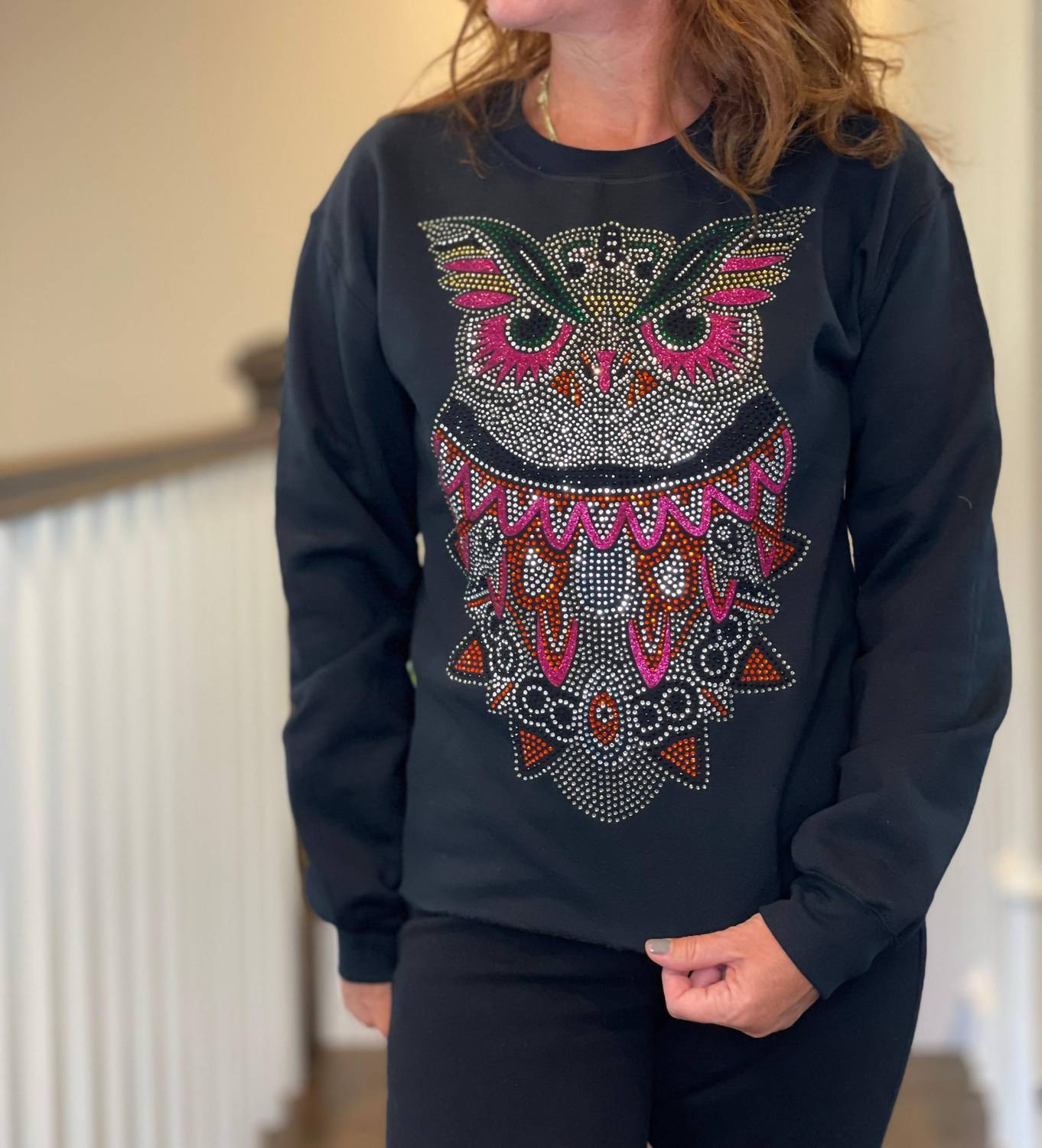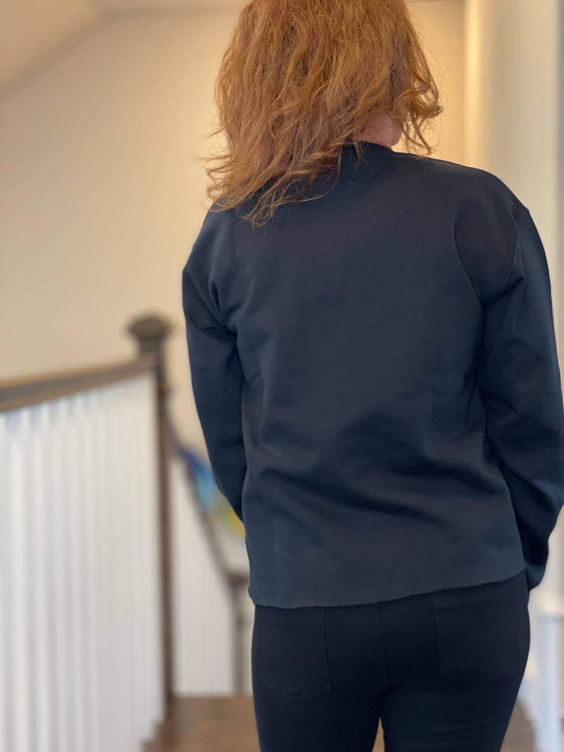 This women's sweatshirt features long sleeves and a raw bottom hem, offering an edgy yet comfortable fit. Made from cotton, it boasts a pull-on closure for convenience. Care for this graphic design by hand washing in cold water and laying flat to dry. Cathleen is wearing a size small and stands at 5'4".