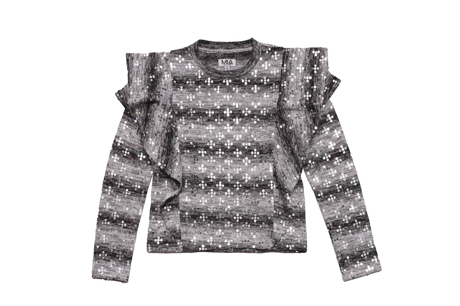 Mia - Girls' Sequin Ruffle Flutter Sweater