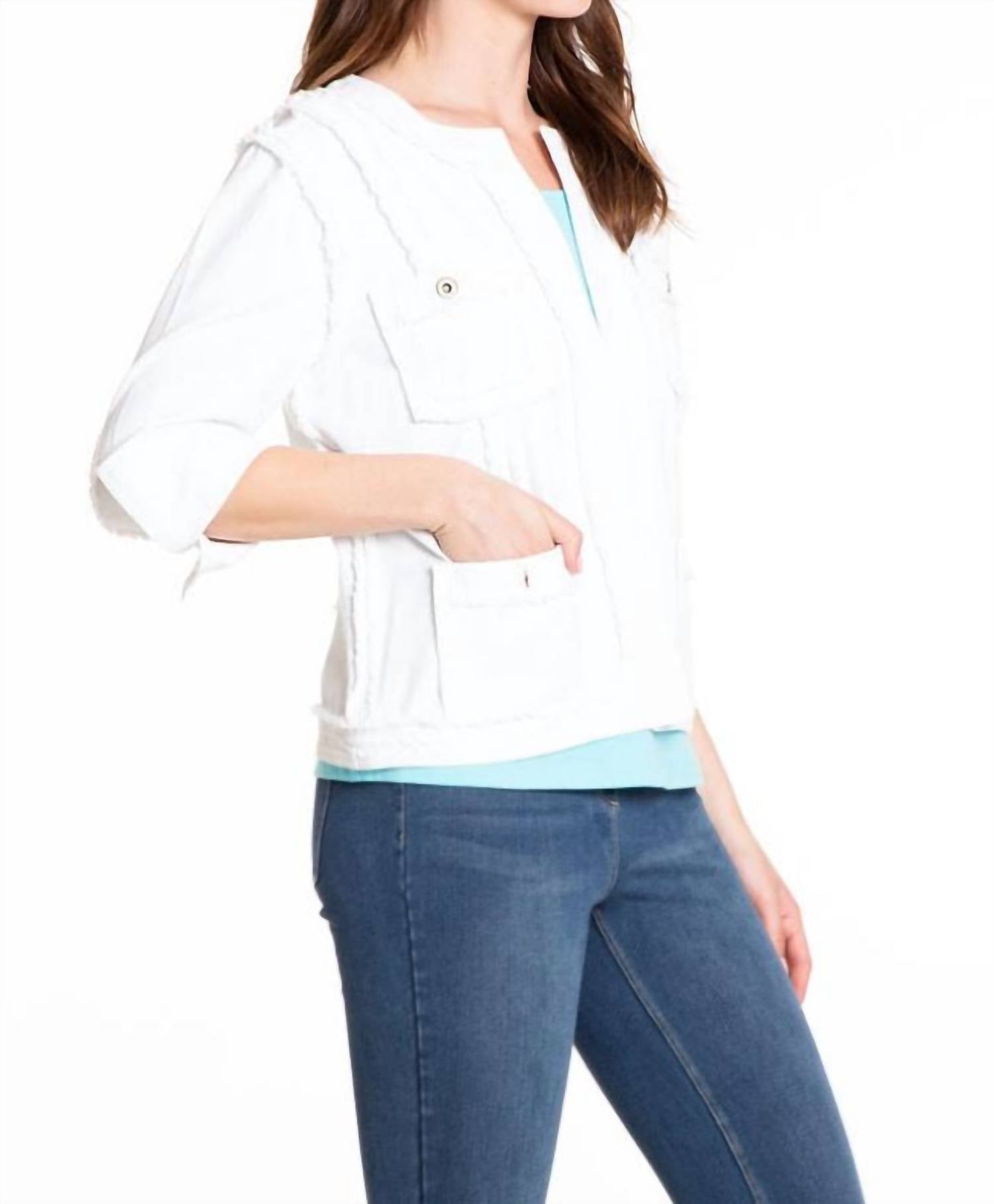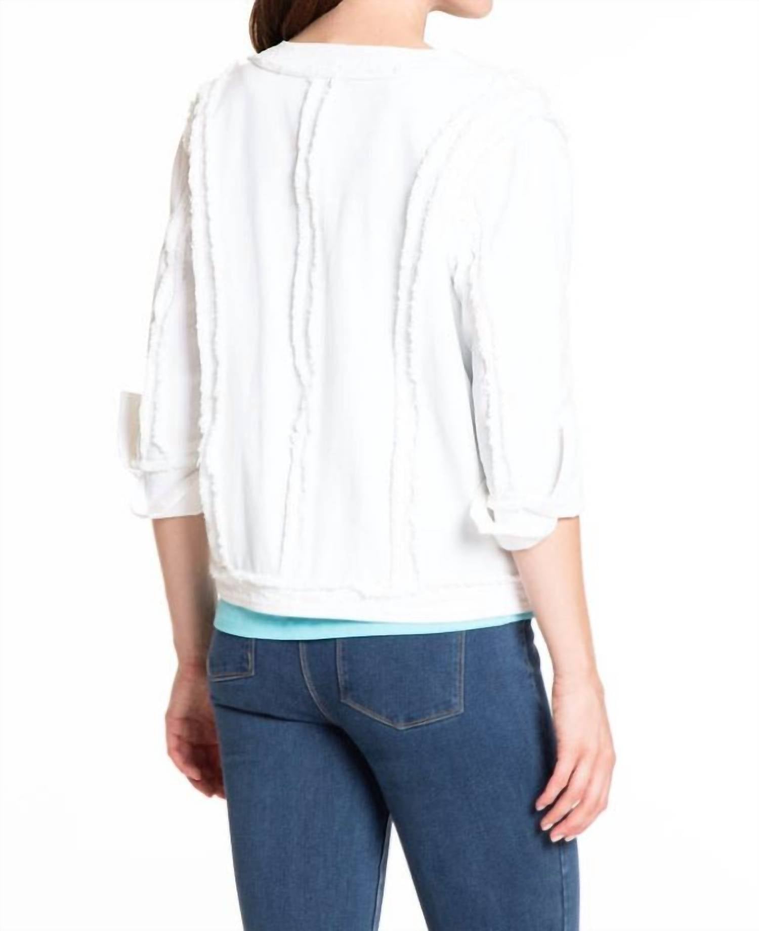 Cuffed 3/4 Sleeve. 4-Pocket . Fringe Trim . Imported. Style M13503JM