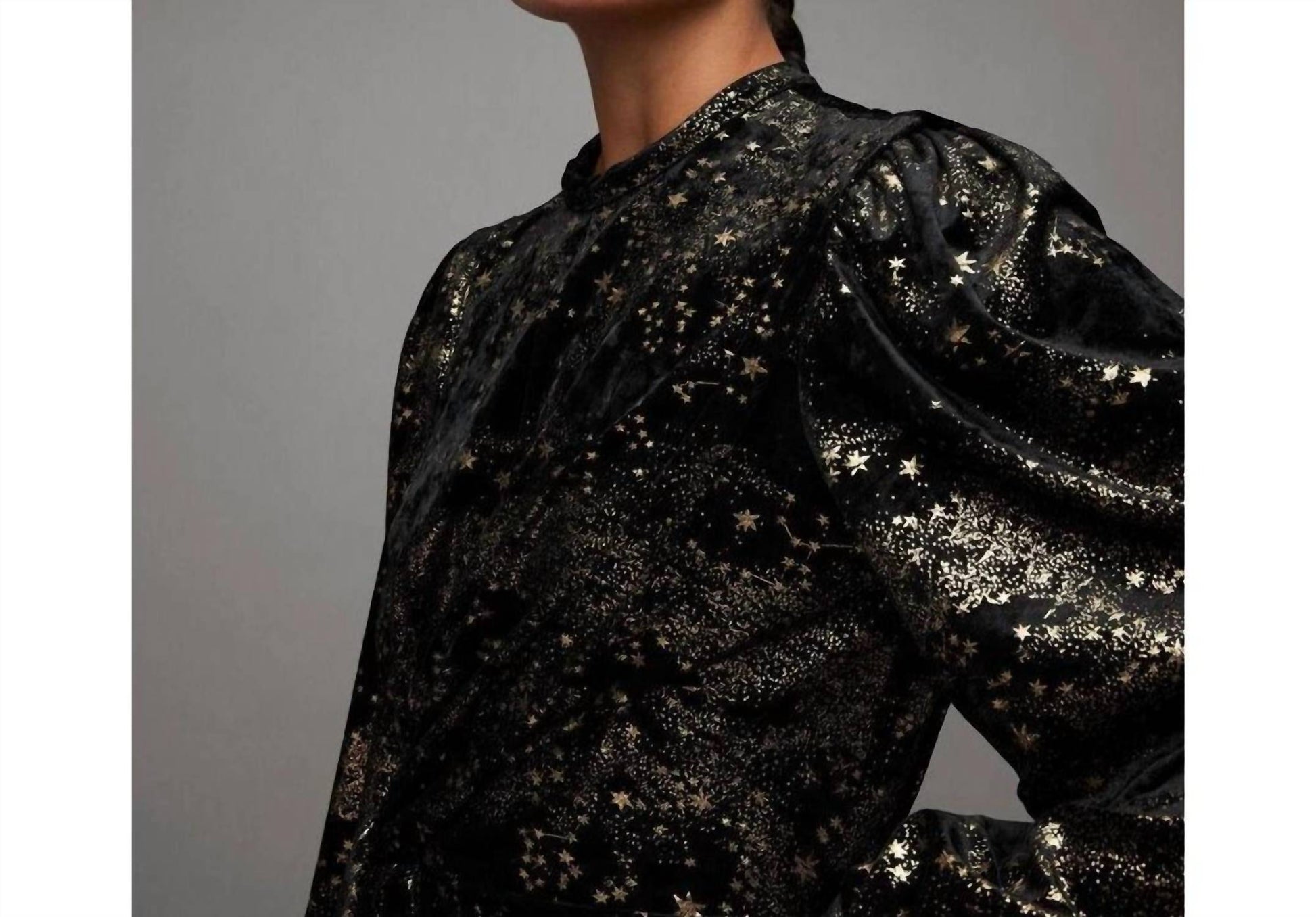 Allsaints - Jemima Star Dress Velvet Metallic Gold Printed