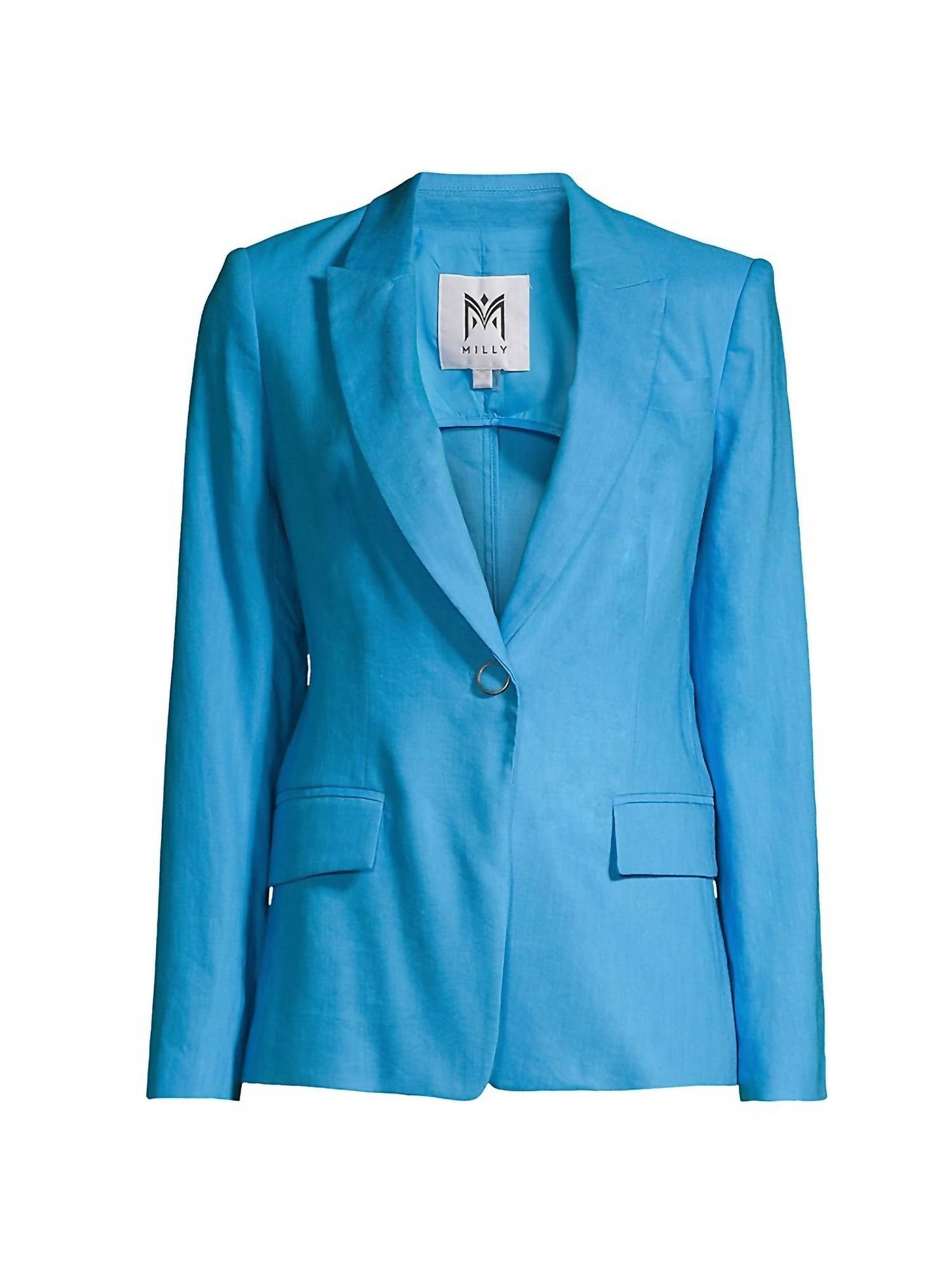 A luxe linen blend and features classic notch lapels. Notch lapels. Long sleeves. Flap pockets. Button-front closure. About 27.5" from shoulder to hem. Model is 5'10" wearing a US size 4. Dry clean only. 100% Polyester.