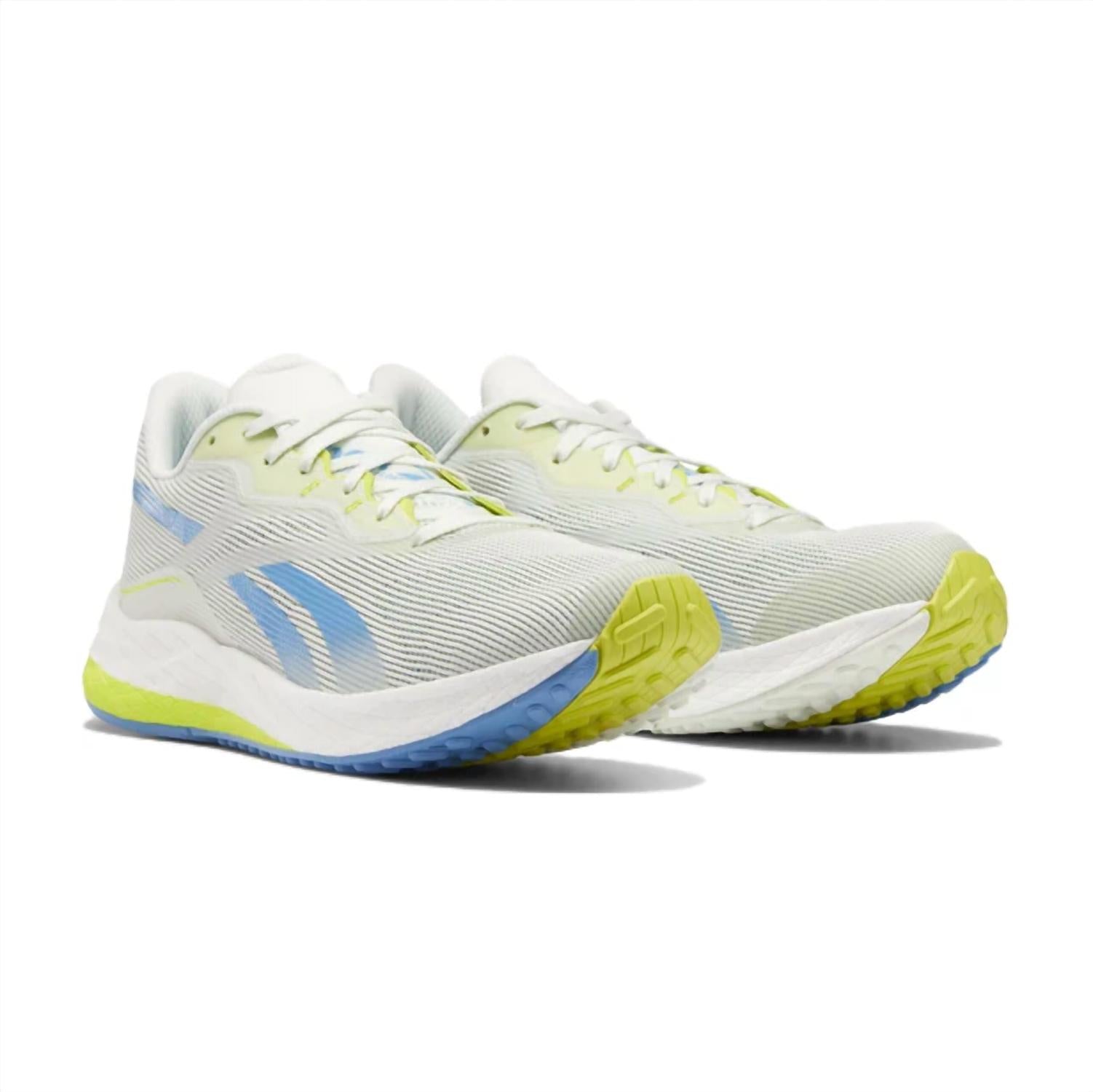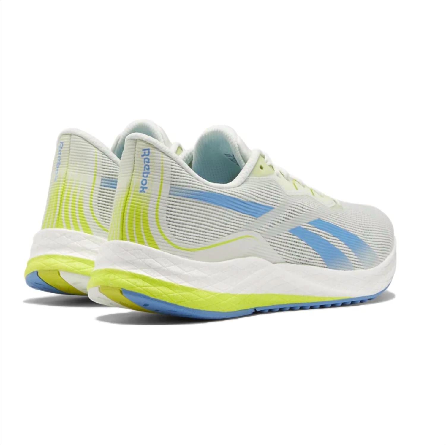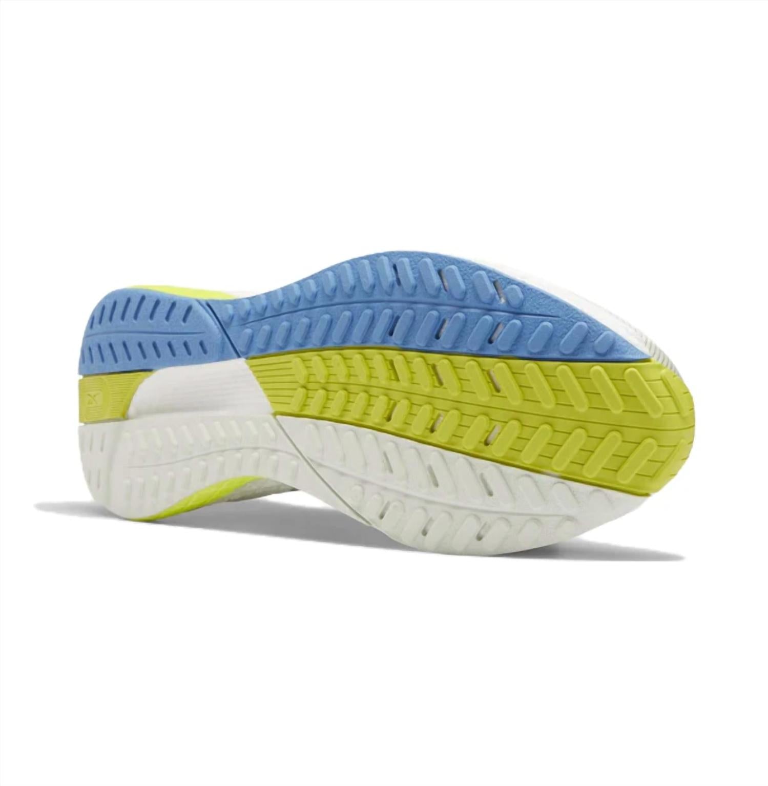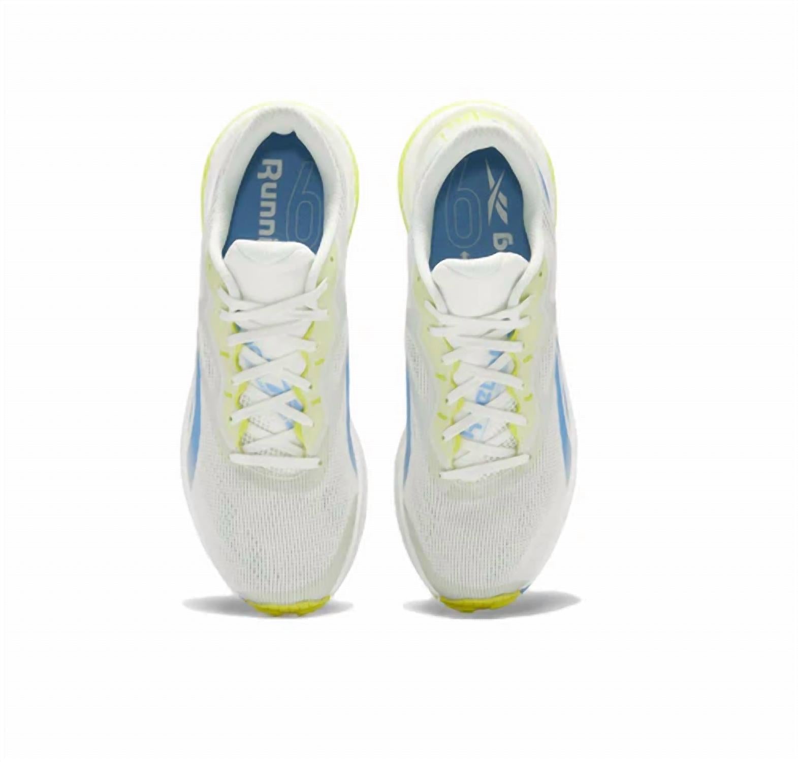 Introducing the Women's FloatRide Energy 3.0 Shoes by Reebok in a dynamic blend of Opal Glow, Acid Yellow, and Essential Blue. These athletic shoes feature a breathable square knit upper and a comfort flared heel collar for a precise fit. Built with lightweight, responsive Floatride Energy Foam for exceptional cushioning. The durable carbon rubber outsole provides reliable traction, enhancing performance with every stride.