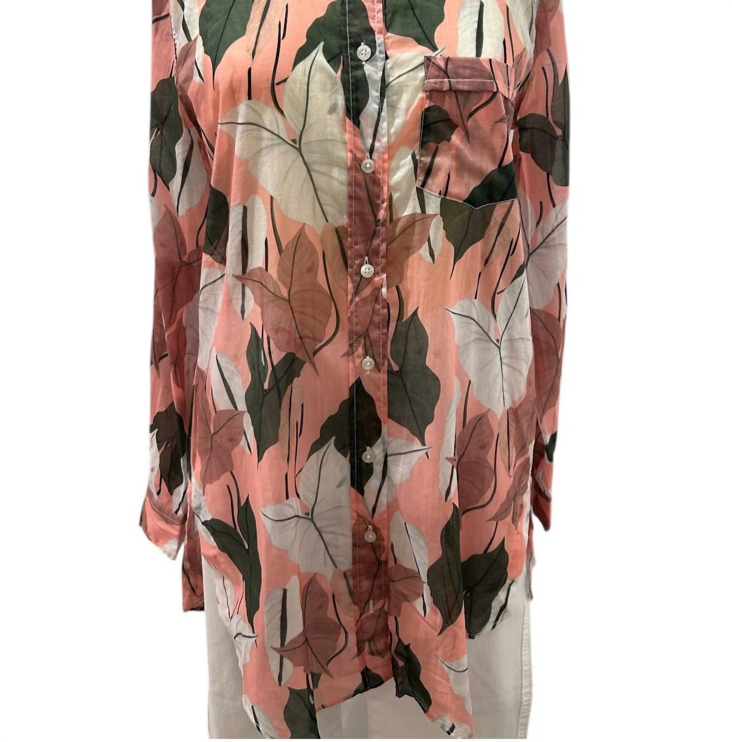 This blouse features a charming floral print that adds a touch of femininity to any outfit. It includes a continuous button strip and a patched breast pocket for added detail, along with a back yoke and an elongated back that enhances its stylish silhouette. The rounded hem provides a flattering finish, while the sleeves come with cuffs and a bar for easy rolling up. In size S, the length measures approximately 35.2 inches. Made from 100% cotton, it is easy to care for with machine washability at 30°C.¬â€