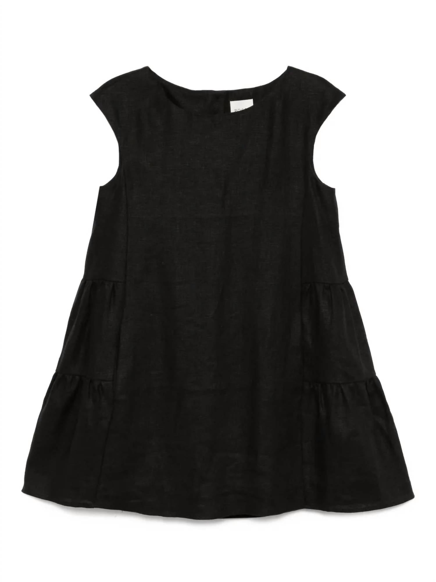 A short and breezy dress for those warmer days. Introducing the Matilda Shift Mini Dress by POSSE, a minimalist masterpiece in elegant black. Constructed from premium 100% linen, this dress features flattering cap sleeves and a graceful boat neckline, perfect for travel or spring occasions. Its relaxed silhouette is enhanced by multi-tiered side seams, and it includes convenient side pockets. Closure: Center back concealed button closure. Care: Dry clean only.