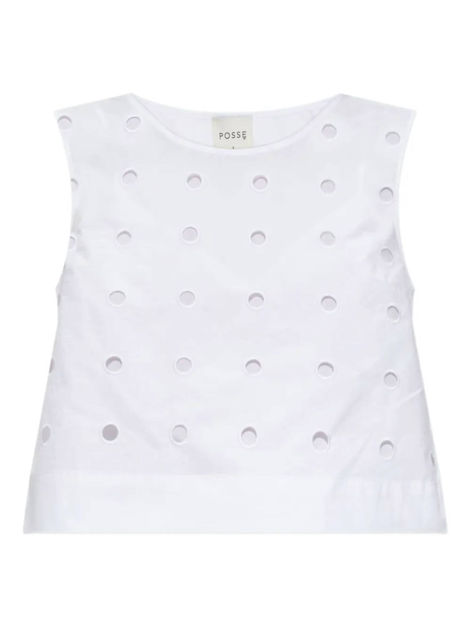 A versatile blouse that works from desk to dinner! Discover the Peggy Crew Neck Top by POSSE, a sleeveless blouse crafted for minimalist elegance in Vintage White. Made from 100% cotton, this imported piece features a boxy, cropped silhouette with stunning laser-cut embroidery. Ideal for summer occasions or game day, it effortlessly blends style with comfort. Care for this solid-patterned top by machine washing as needed.